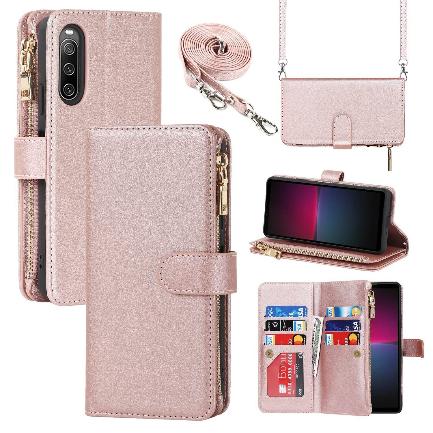 Xperia 10 IV ケース 手帳型 ショルダー クロスボディ XPERIA10IV ケース xperia10マーク4ケース xperia10 4ケース xperia10マーク4 xperia10 マーク4 xperia 10 4 au SOG07 docomo SO-52C SoftBank 全対応 Xperia 10 4 ケース 手帳 Xperia10 4 ソニー SO52C SO 52C 手帳型ケース エクスペリア10 IV エクスぺリア10IV Xperia エクスペリア10 4 IV スマホケース Xperia 10IV ケース 携帯カバー xperia10IV ケース 手帳型 適用 CASE ストラップホール付き カード収納 バッグ マグネット 留め具 肩がけ 首掛け 斜め掛け カードケース ファスナー型 ストラップ付き カバー ショルダーケース クロスボディケース カード入れ スマホケース 携帯カバー ピンク
