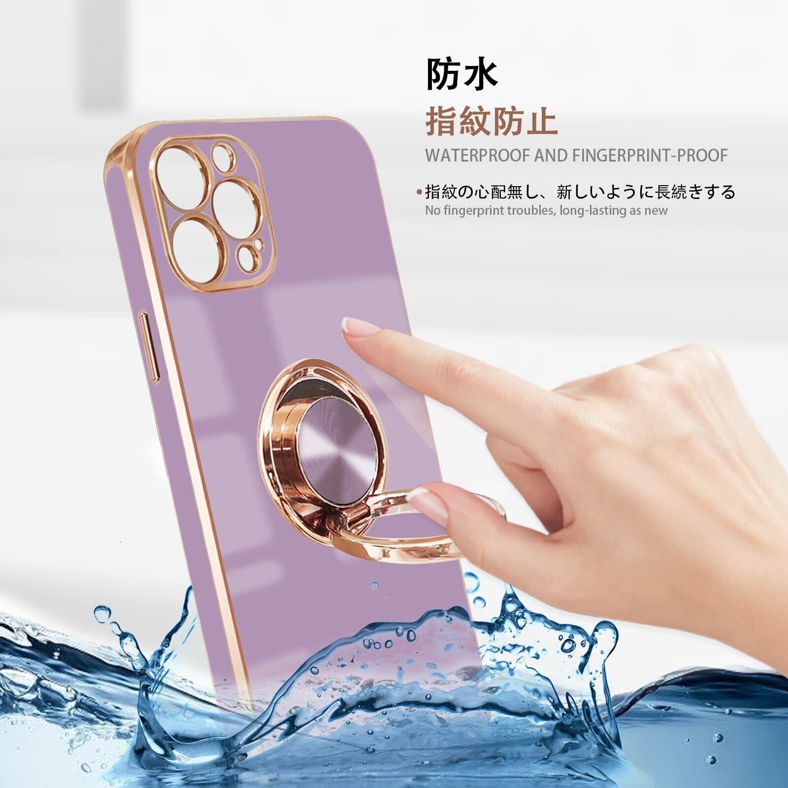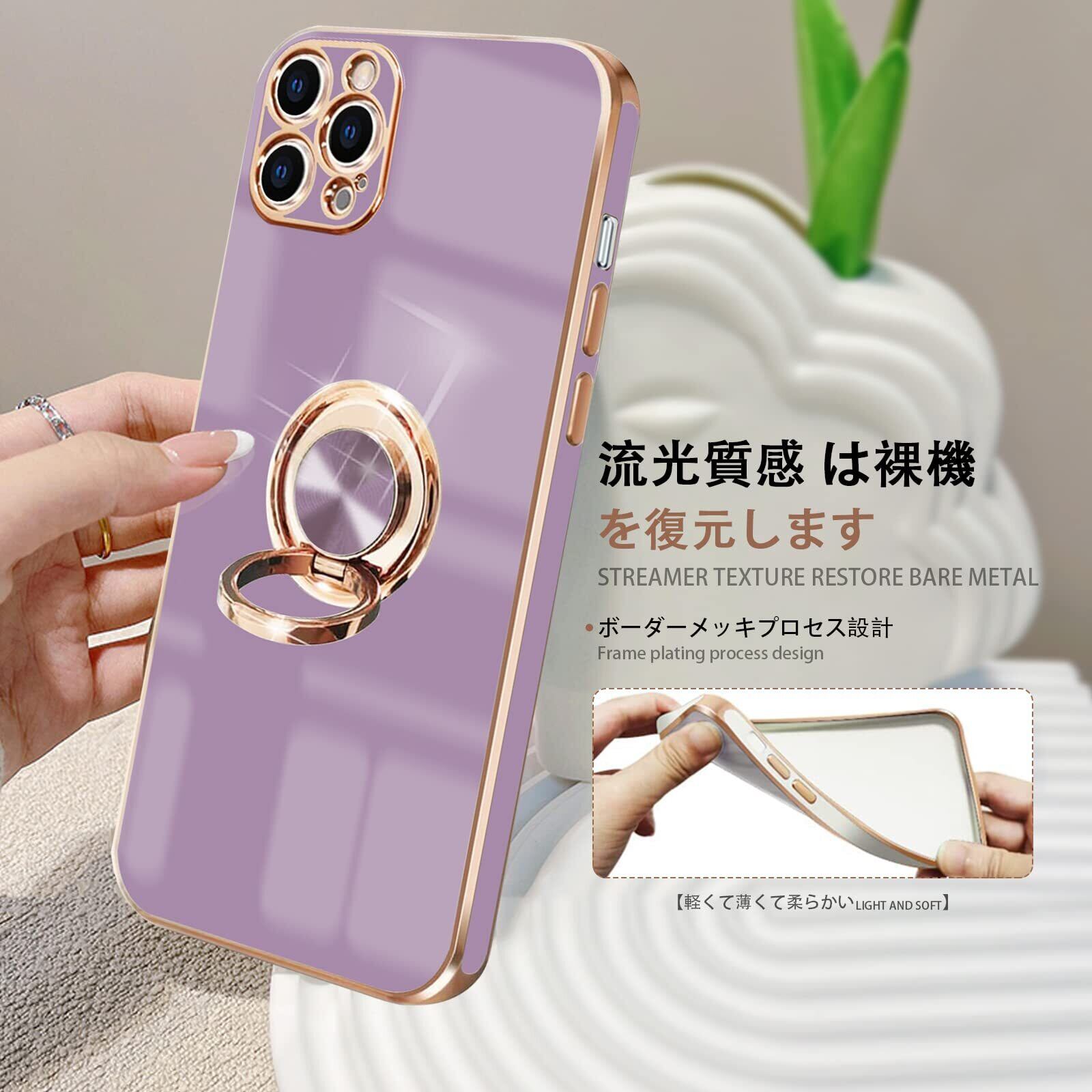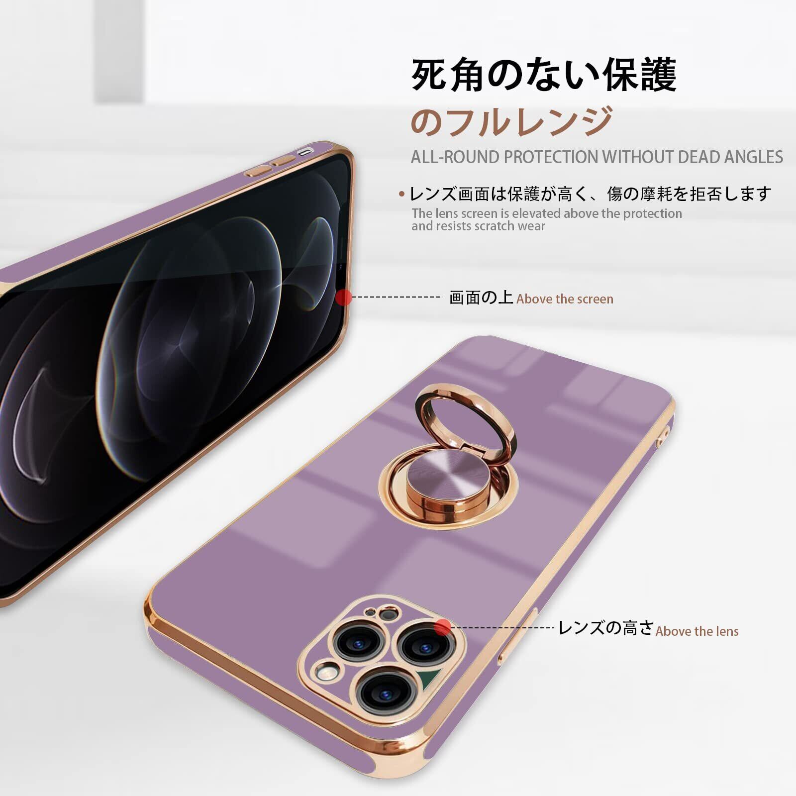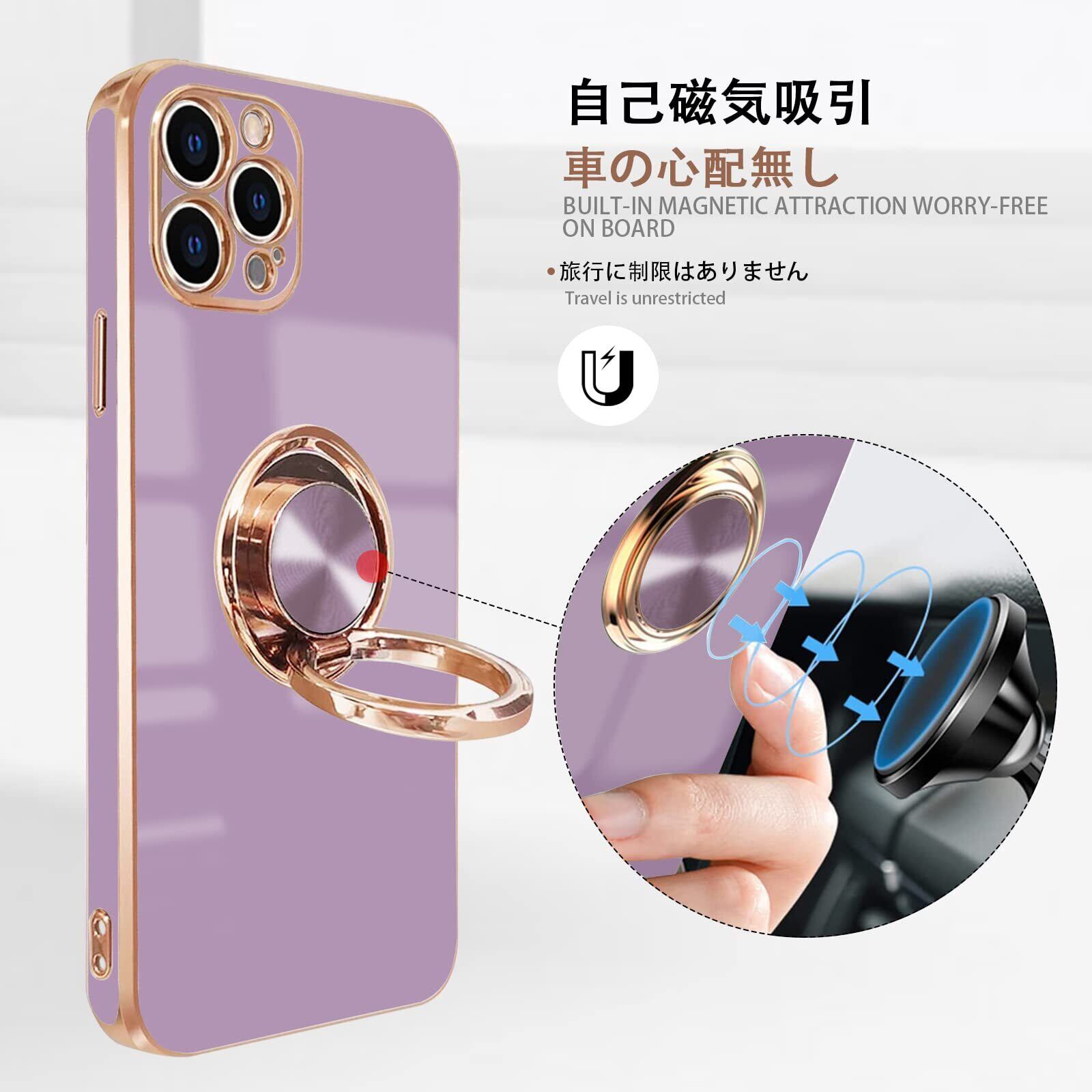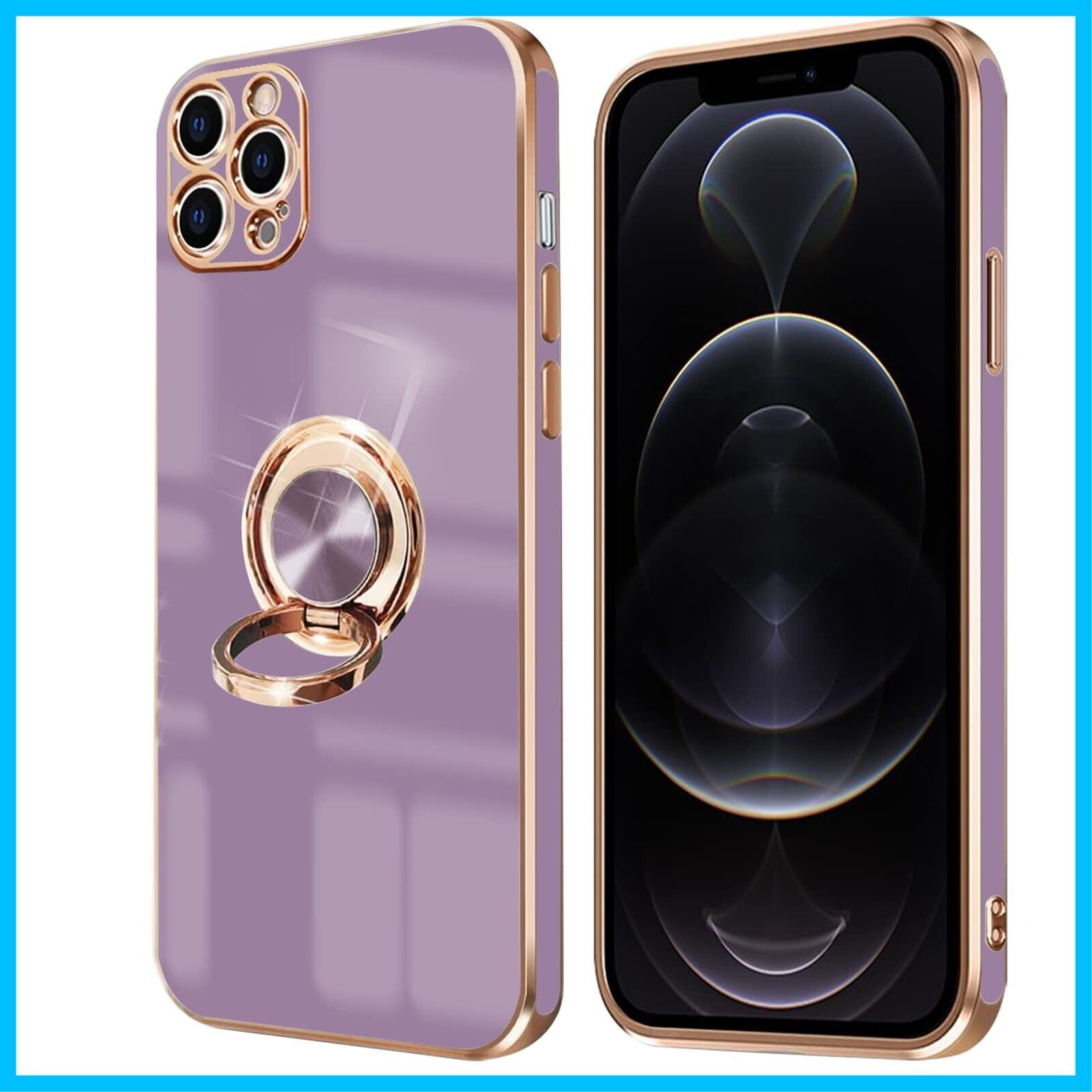 NPOFR SXMO For iPhone 12 Pro 用の ケース リング付き アイフォン12Pro 用の リング カバー 全面保護 スマホケース TPU 耐衝撃 スタンド機能 車載スタンド対応 ストラップホール付き 擦り傷防止 メッキ加工 6.1インチ(パープル)