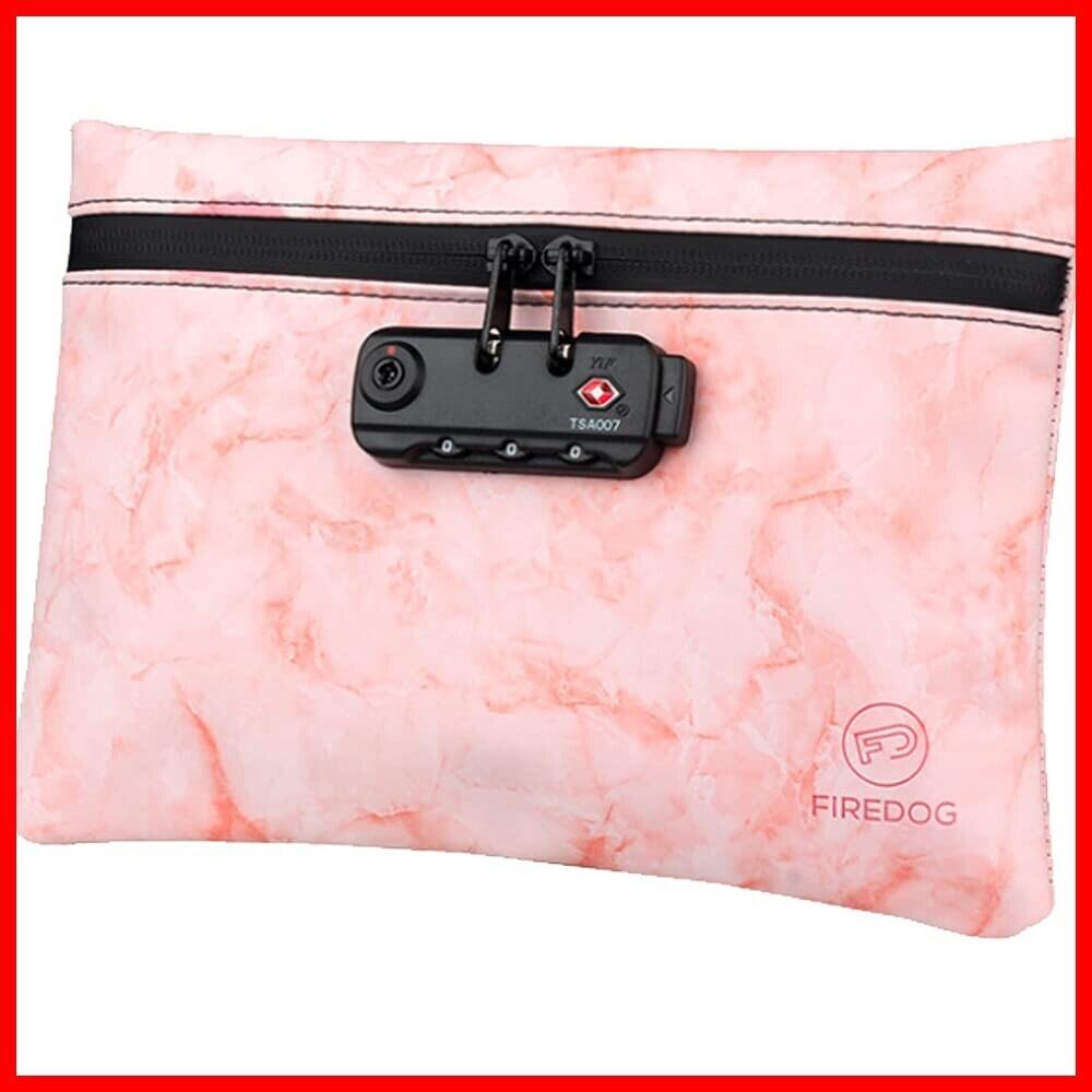 防臭 防犯 TSAロック3桁ダイヤル錠付き GPT 活性炭 PUレザー薄マチポーチ 集金袋 脱臭 大理石風 薄型ケース ピンク