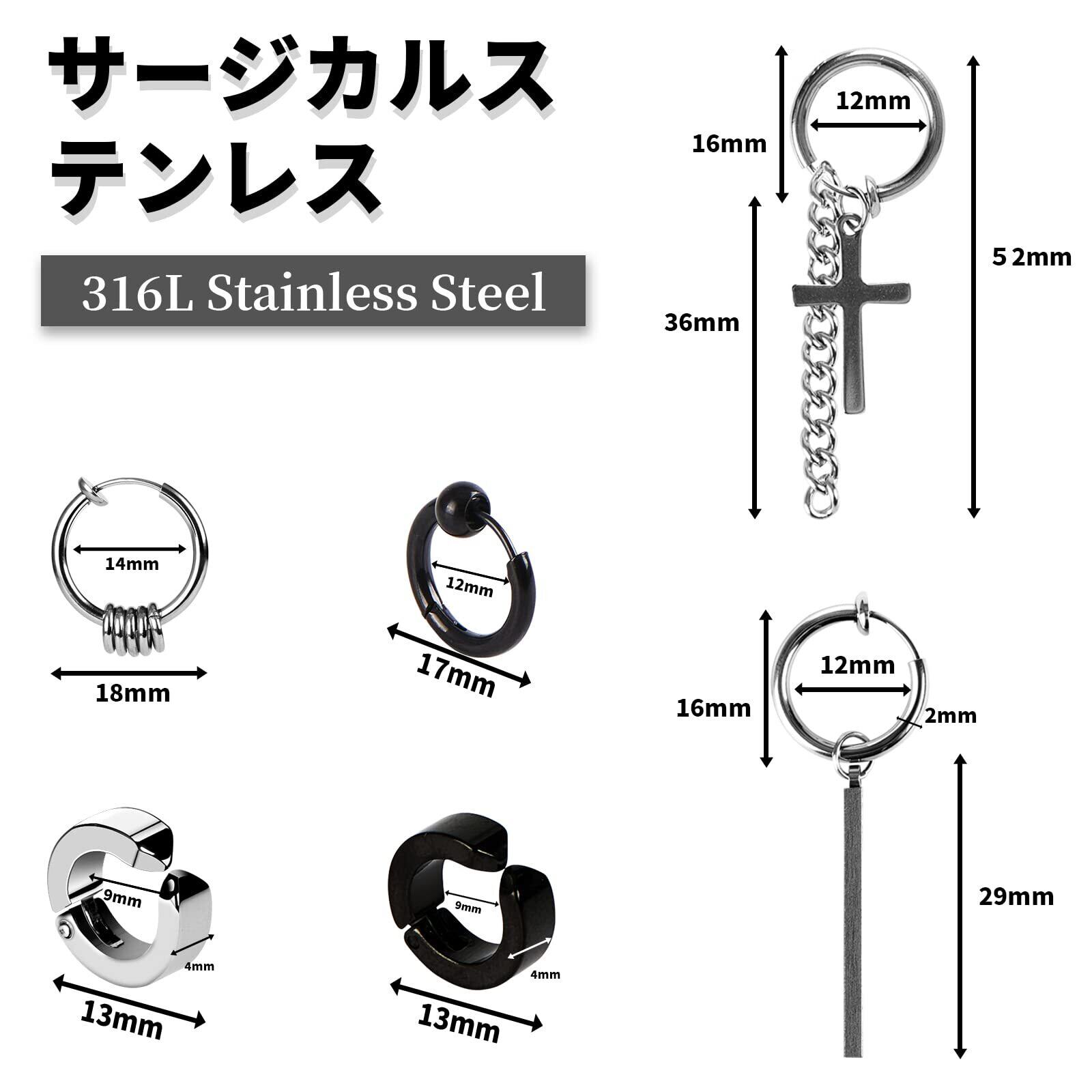 【製品仕様】フープタイプ:「外径:16mm/17mm/18mm、内径12mm/14mm、フープの幅:2mm、パーツの長さ:スティック/39mm、十字/18mm、チェーン/36mm」、厚みタイプ:「内径9mm、フープの幅:4mm」【材質】ステンレス【対象】メンズ・レディース カップルやお友達同士でシェアすると更にお得です。【プレゼントとして最適】男女兼用で、ペアピアスとしてもおすすめの商品です。自分用にはもちろん、誕生日、クリスマス、記念日など大切な方への贈り物にもおすすめです。