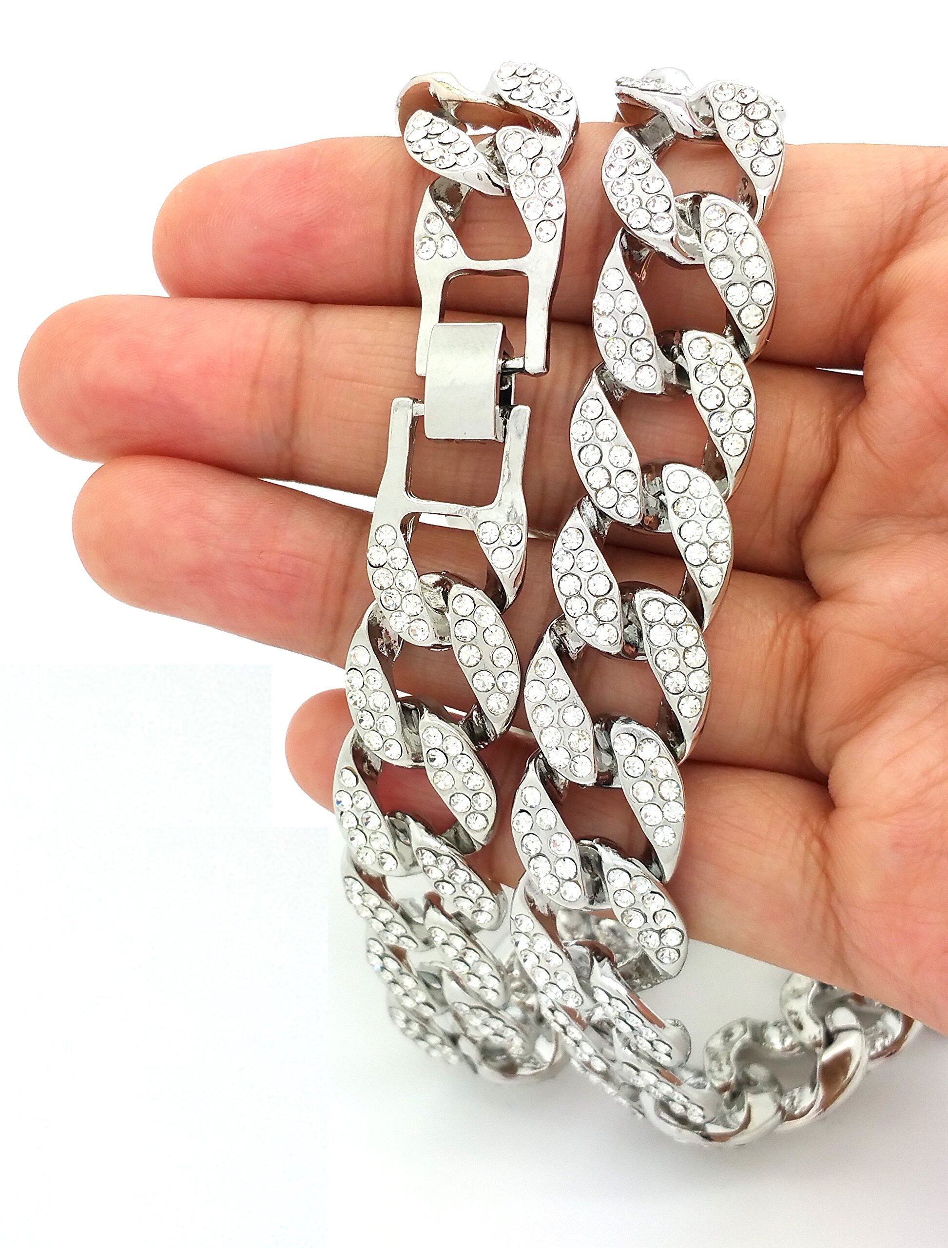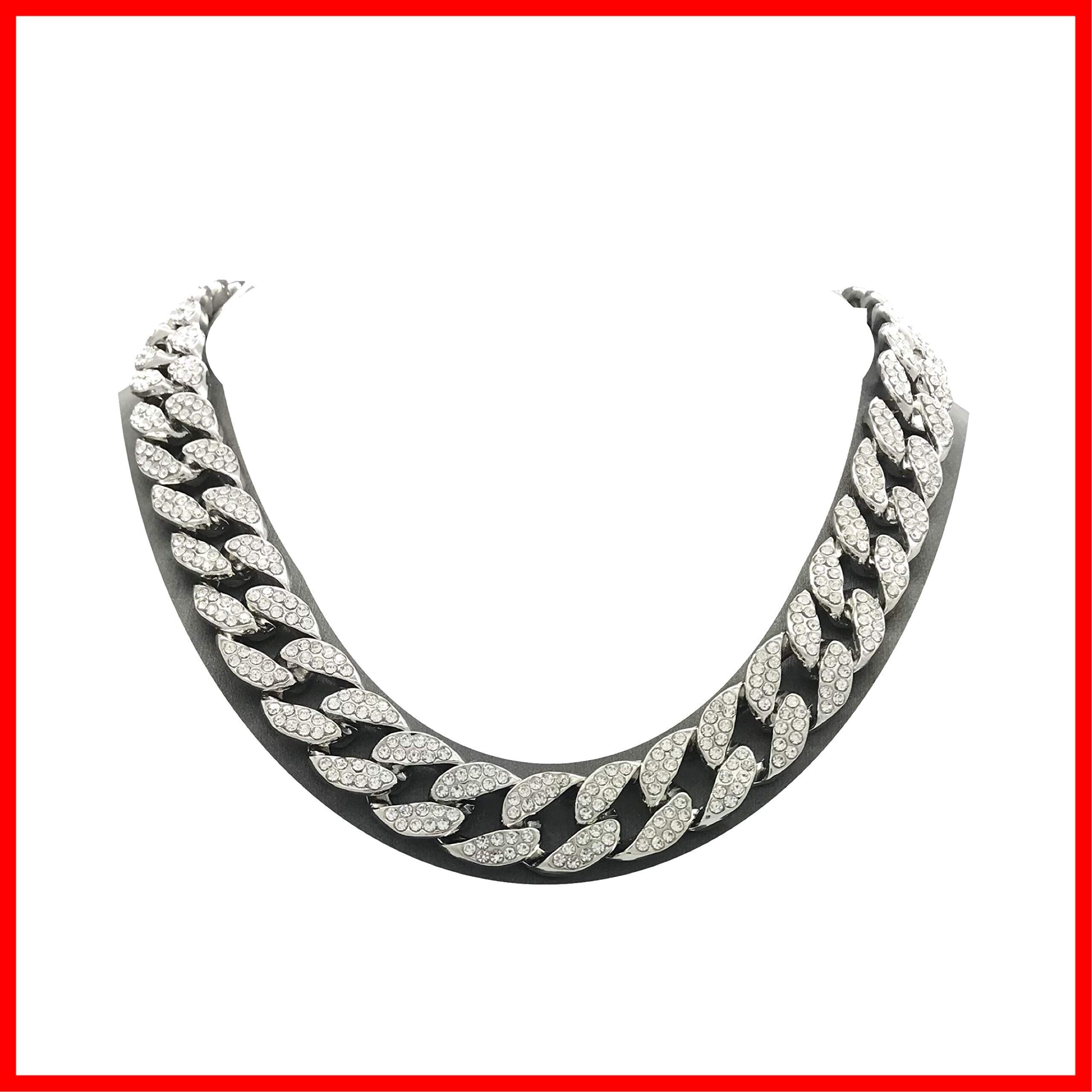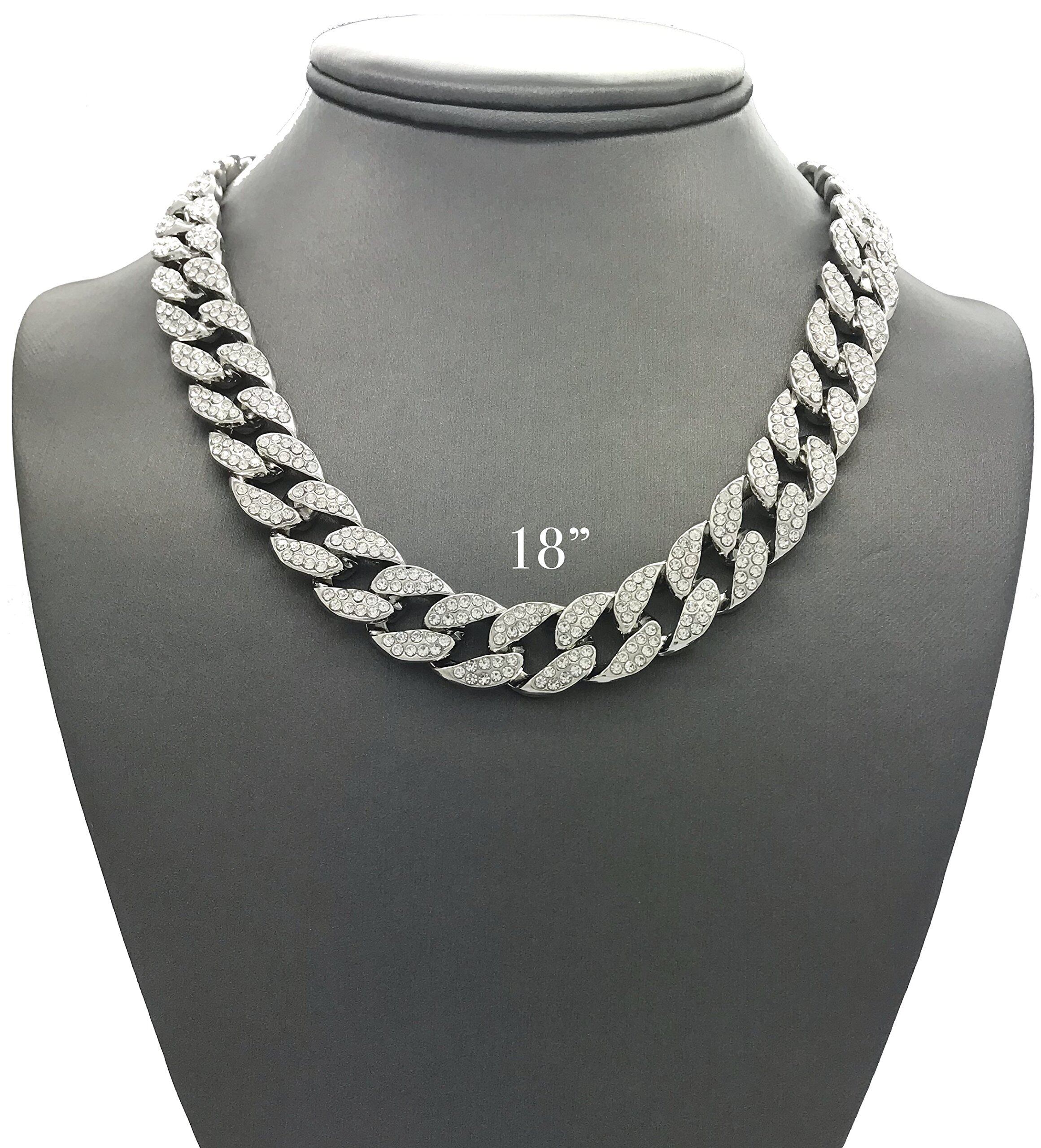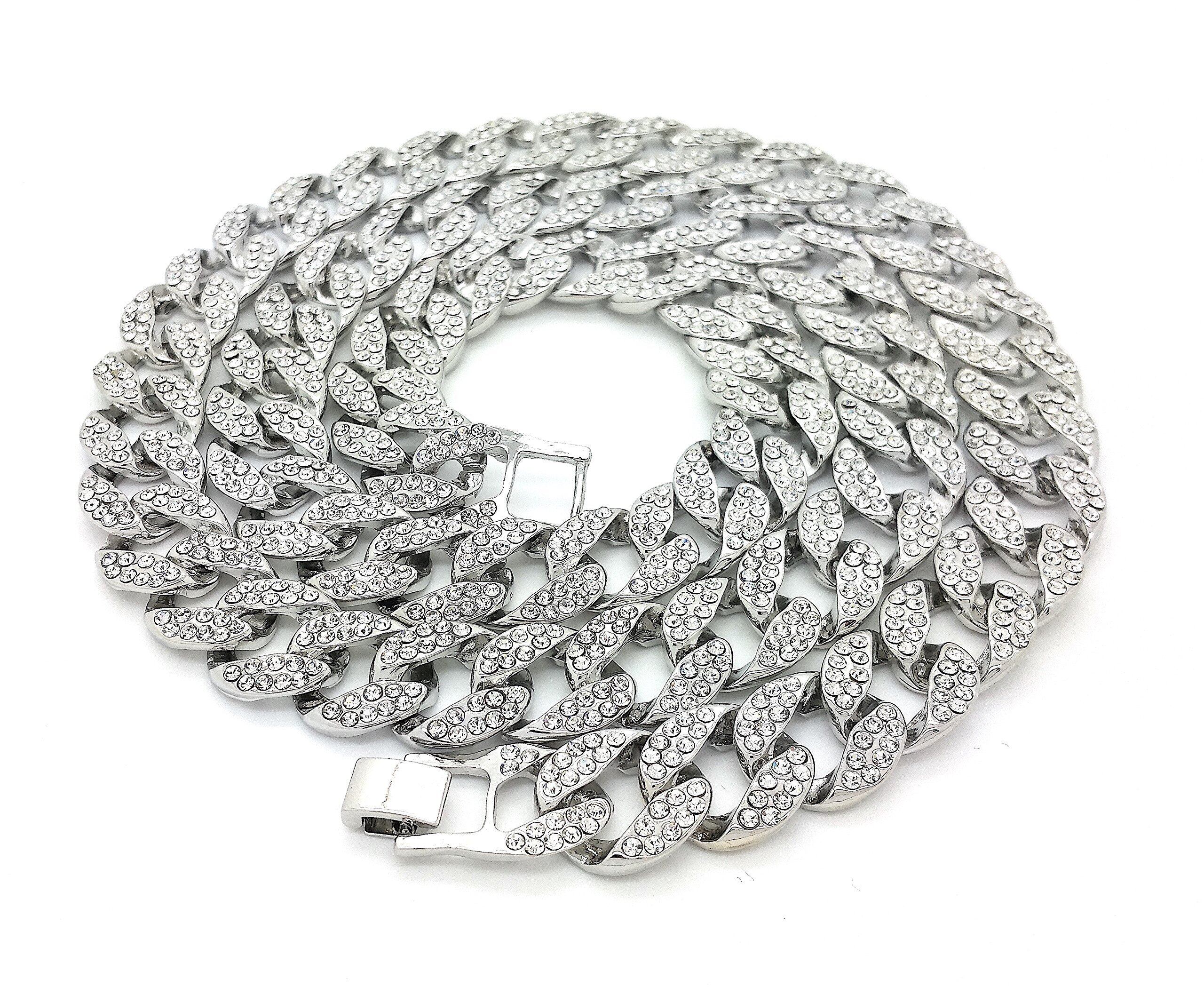 Shiny Jewelers USA メンズ アイスアウト ヒップホップ シルバートーン キュービックジルコニア マイアミキューバリンクチェーン チョーカーネックレス