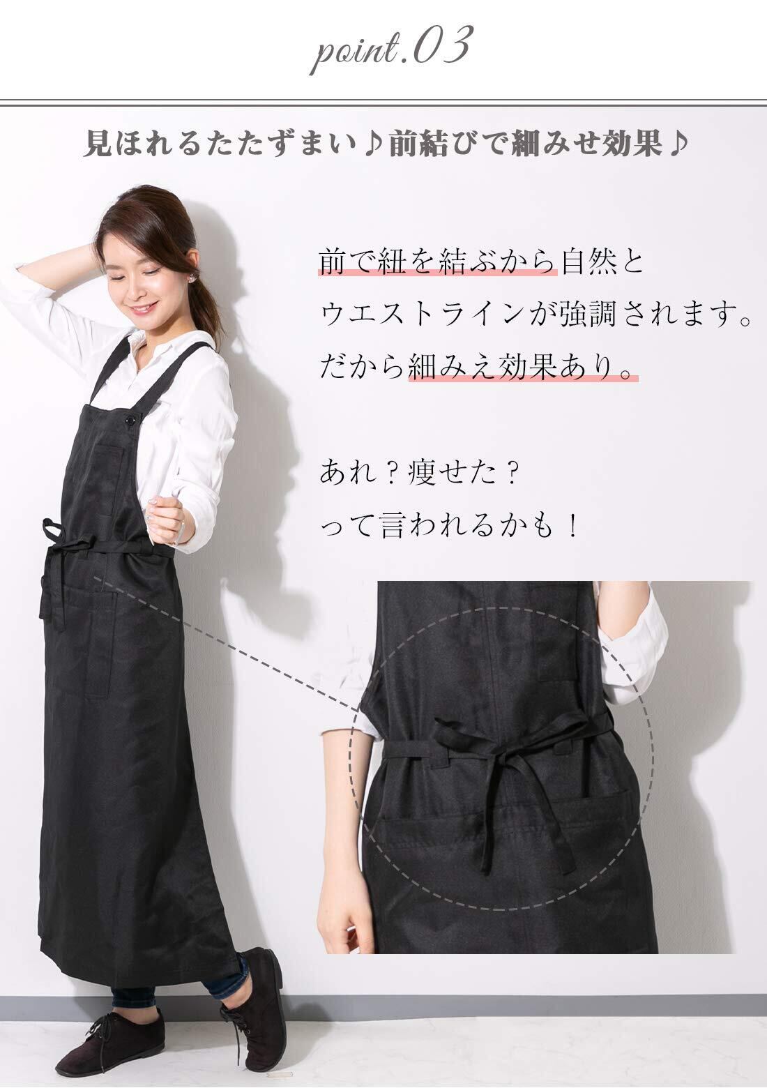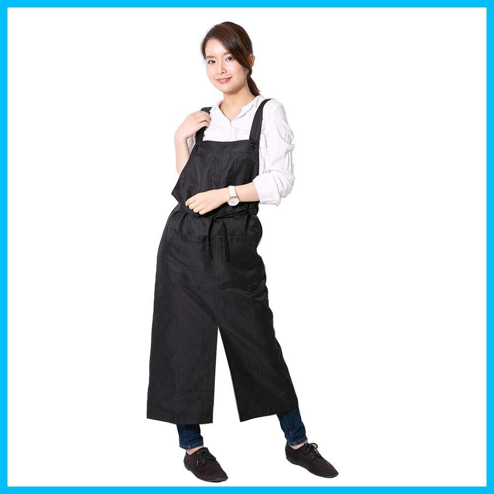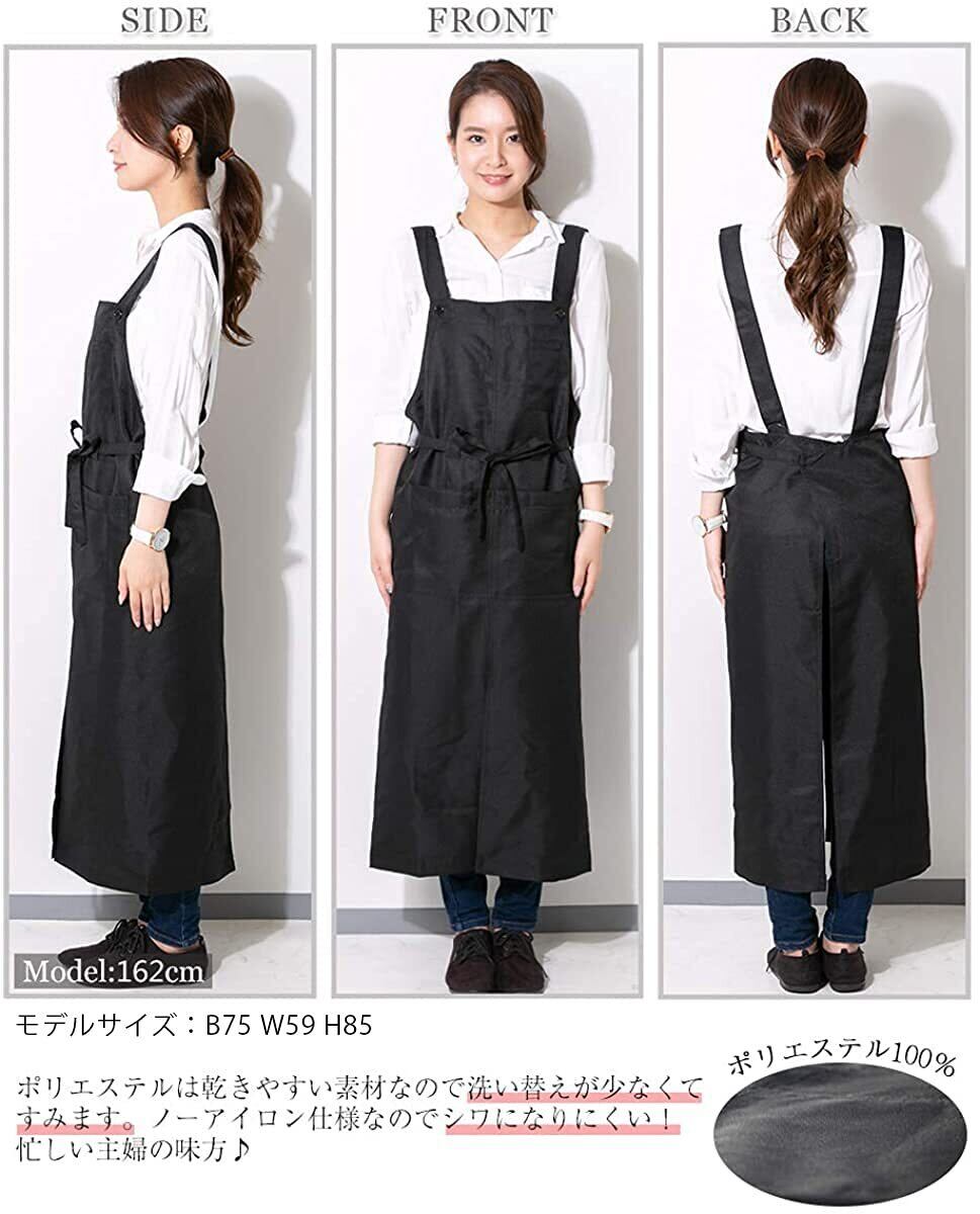 エプロン H型 ロング丈 スリット 動きやすい おしゃれ 無地 サロン 黒 ロングエプロン カフェ ワンピース 男女兼用 (1, ブラック)