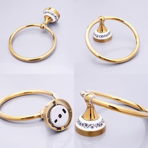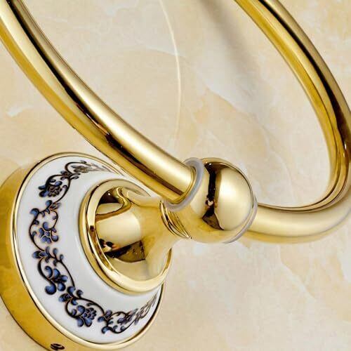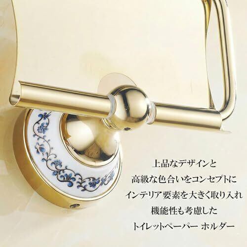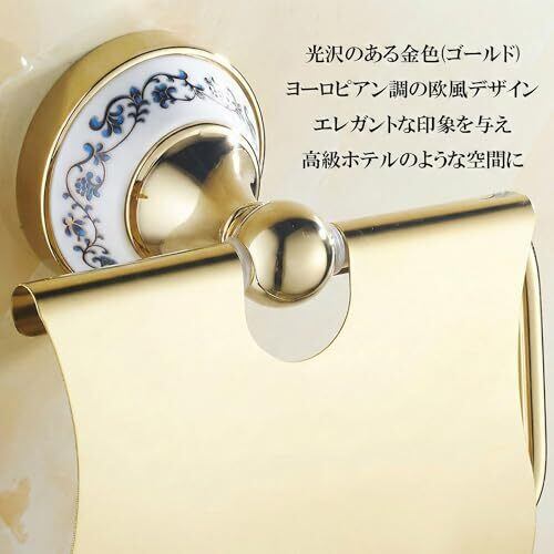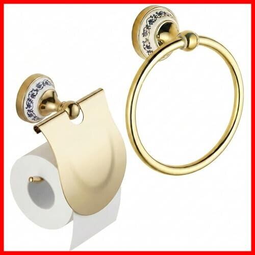 トイレットペーパーホルダー タオルハンガー 2点セット ステンレス製 おしゃれ 欧風 アンティーク調 インテリア 壁掛け トイレ 洗面所 (ゴールド 金)