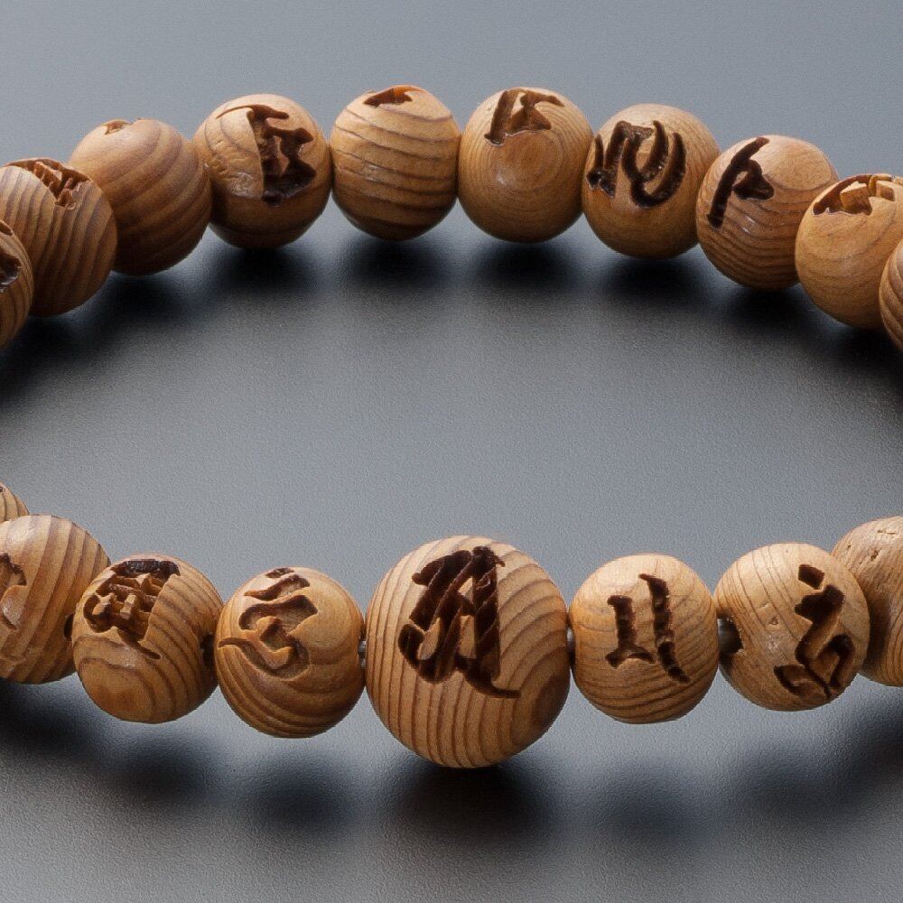 仏壇屋 滝田商店 特選 腕輪念珠 木玉ブレスレット 光明真言彫入り 屋久杉 8mm玉(尺二玉)◆ 最強の厄除け 梵字 数珠 ブレスレット・数珠ブレス・四国 お遍路 お守り
