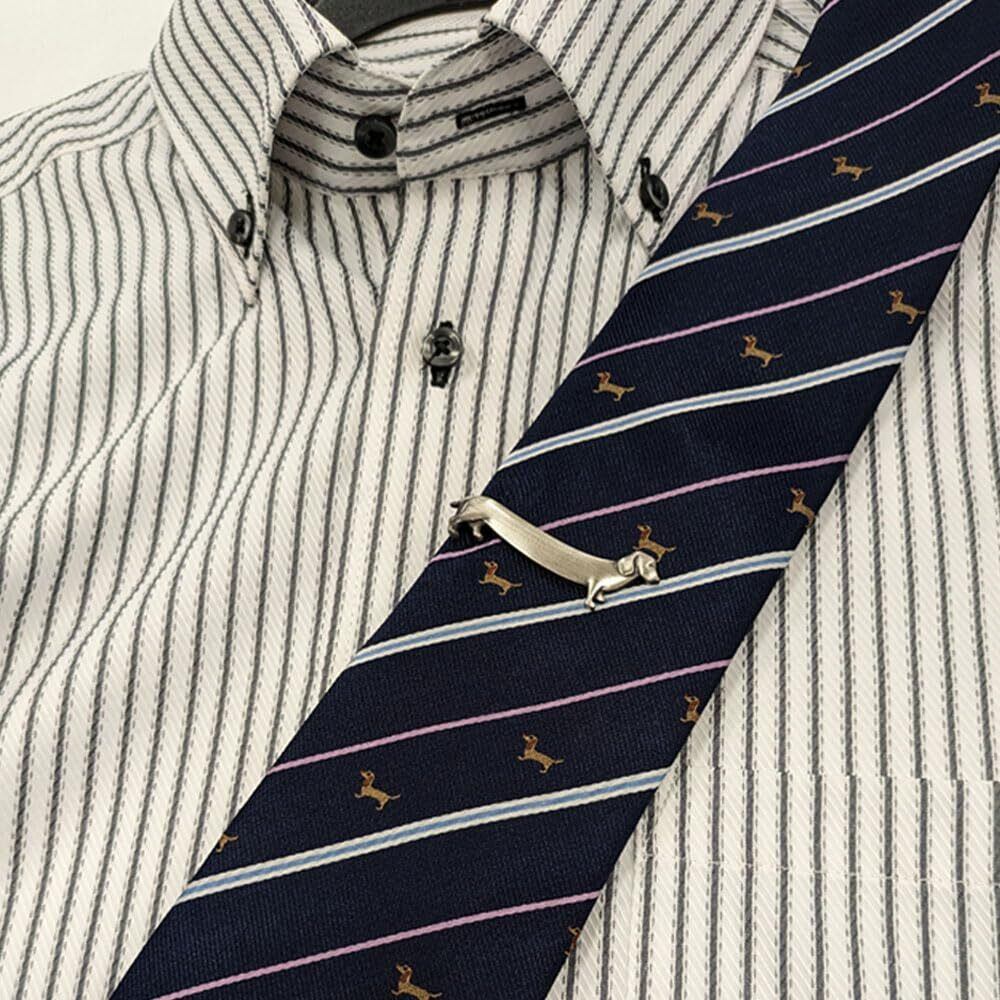 バリエーション豊富 選べるネクタイピン タイピン タイバー コミックタイバー かわいい動物 楽器 モチーフ お洒落なアンティーク仕上げ (ダックスフント)