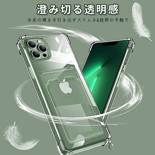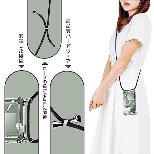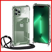 ATUSIDUN iPhone 13 Pro Max 用 ケース クリア ショルダー iphone13pro max カバー カード収納 アイフォン13ProMax スマホケース 肩掛け 首かけ 斜めがけ 縄掛け ケース TPU 耐衝撃 薄型 軽量 財布型 スマホケース 調節可能な 落下防止 紛失防止 シリコン ケース(透明)