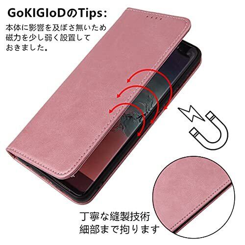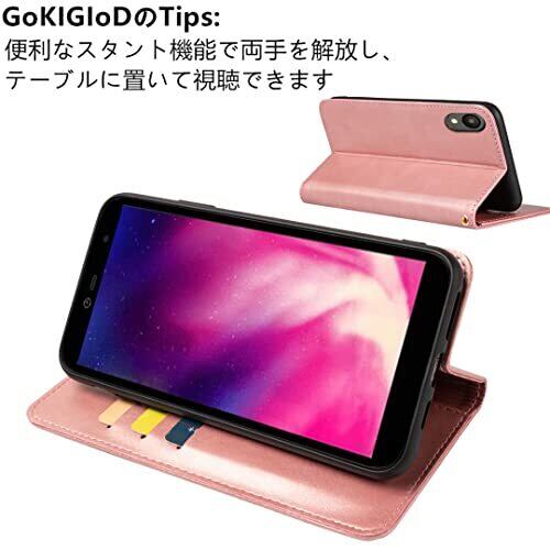 GOKIGIOD 適用 Galaxy A23 5G ケース 手帳型 PUレザー ストラップ 同梱 カード収納 スタンド機能 耐衝撃 ギャラクシー A23 SC-56C SCG18 スマホケース 手帳 GalaxyA235G case カバー 財布型 内蔵マグネット 弱磁 ストラップホール 携帯カバー レトロ ピンク