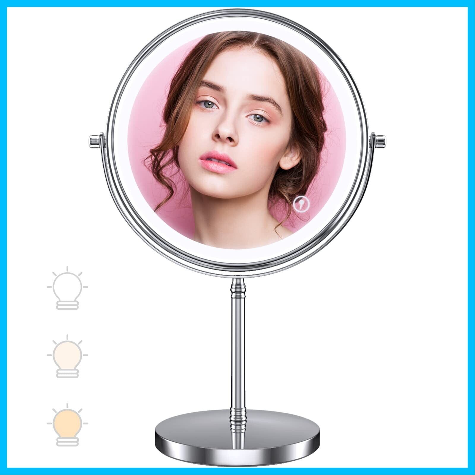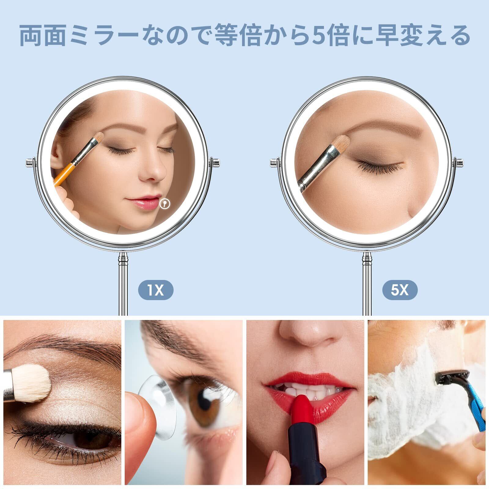 【タッチ式&3色調節】ワンタッチで「寒色・自然色・暖色」を選択可能。ライト付き機能と組み合わせれば、オフィス(寒色)からパーティー(暖色)まで、五倍拡大鏡付きで全てのシーンに対応。長押しで明るさ調節も自由自在!