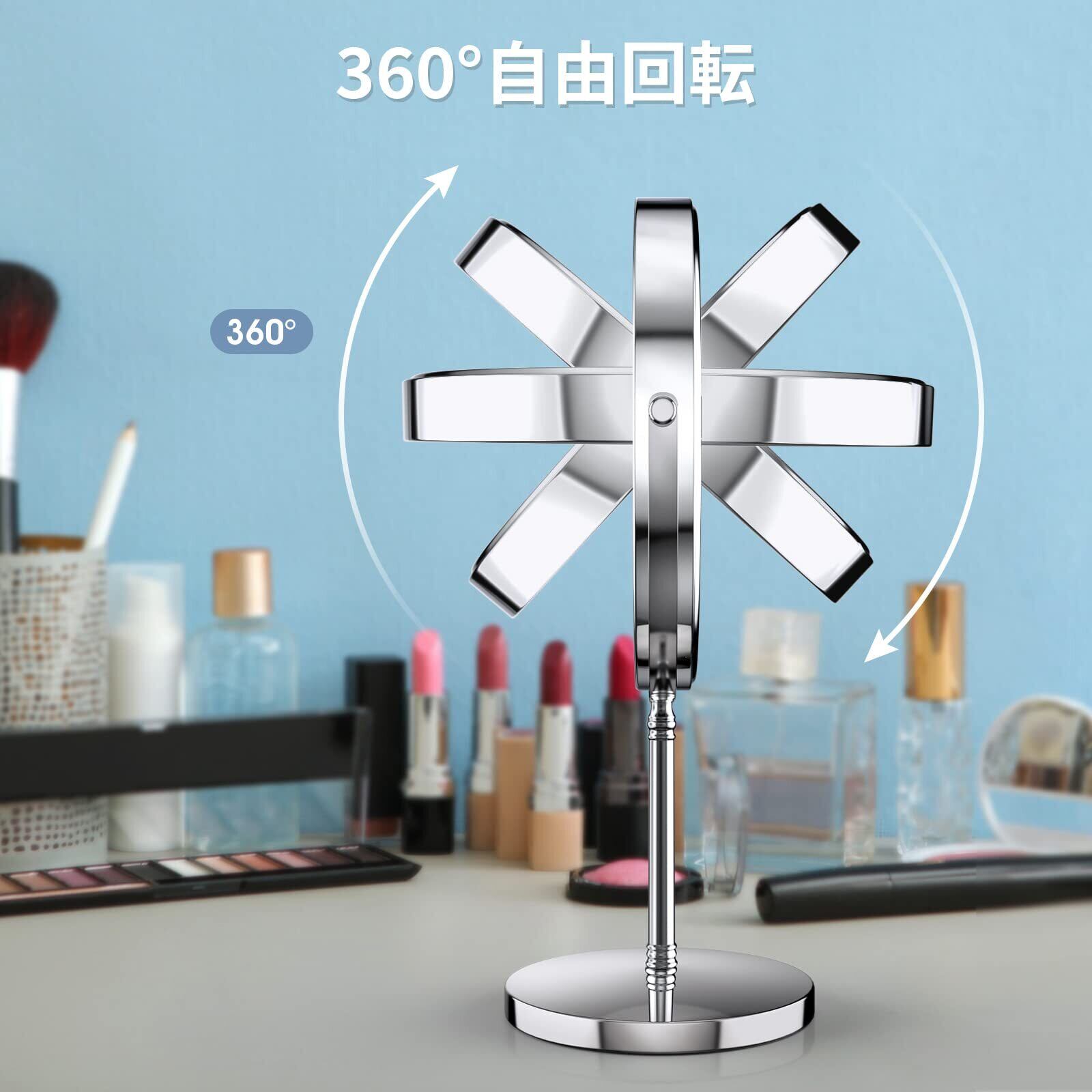 MILPROX 化粧鏡 ライト付き 女優ミラー 1倍5倍拡大鏡 USB充電式 2000mAh大容量 寒暖自然色調節 明るさ調節 タッチ式 360度回転 卓上ミラー スタンドミラー
