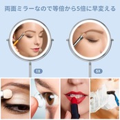 【1倍&5倍拡大鏡】5倍拡大鏡は毛穴・眉毛・うぶ毛までズームで映すから、女優ミラーのような精密メイクが可能! 卓上鏡としても便利で、1倍と5倍を切り替えれば、つけまつげの調整やコンタクト装着もラクラク。拡大鏡 5倍の威力で、いつもよりプロ級の仕上がりに。