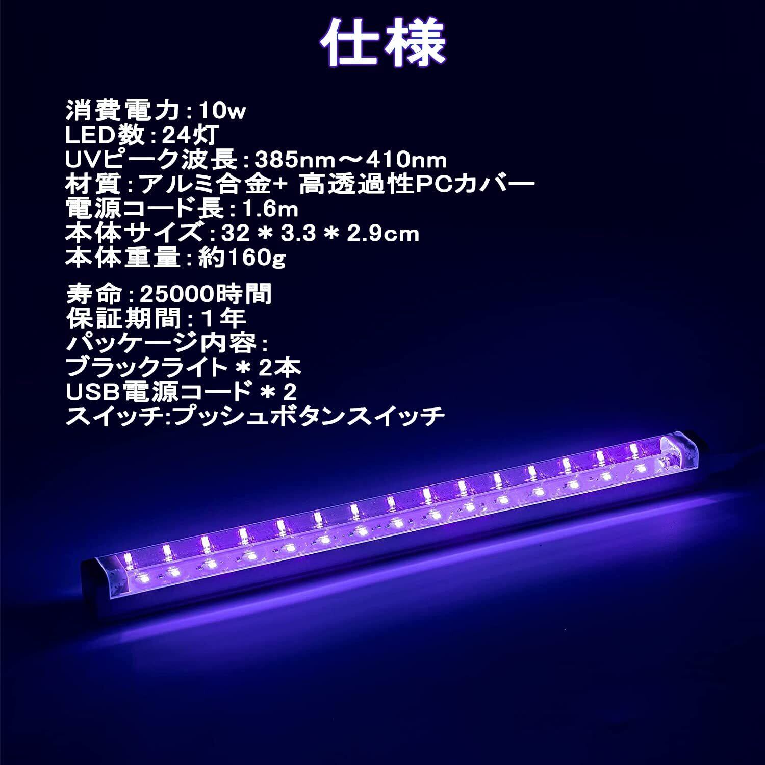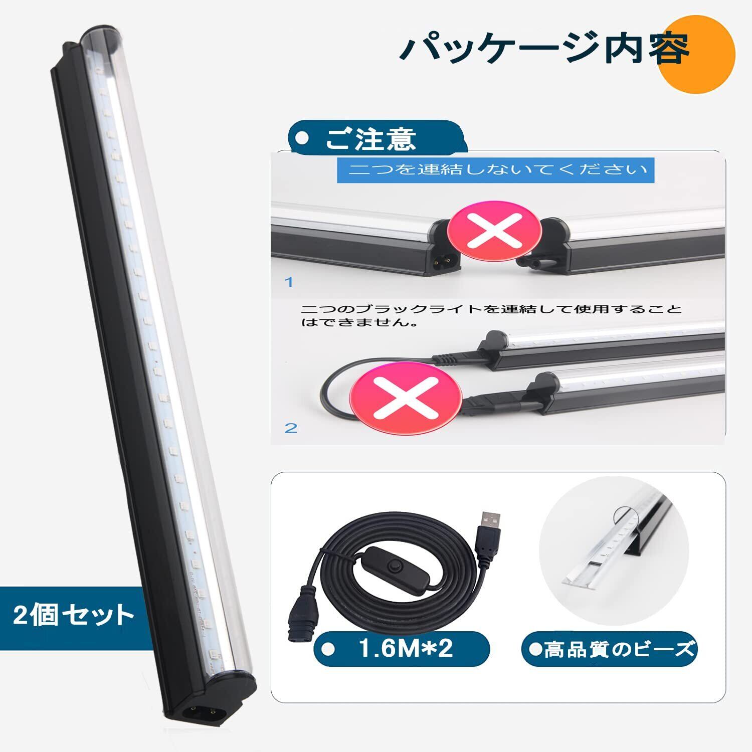 ブラックライト led 紫外線ライト 2本 10W USB給電式 ブラック ライト 蛍光灯 UVライト レジン用 硬化ライト 紫外線 ライト 385~410 nm 結婚式 パーティー 舞台 ステージ照明 イルミネーション 蛍光メイク ペットのオシッコ/見えない汚れのチェック/トイレ掃除/蛍光剤残留等の確認に