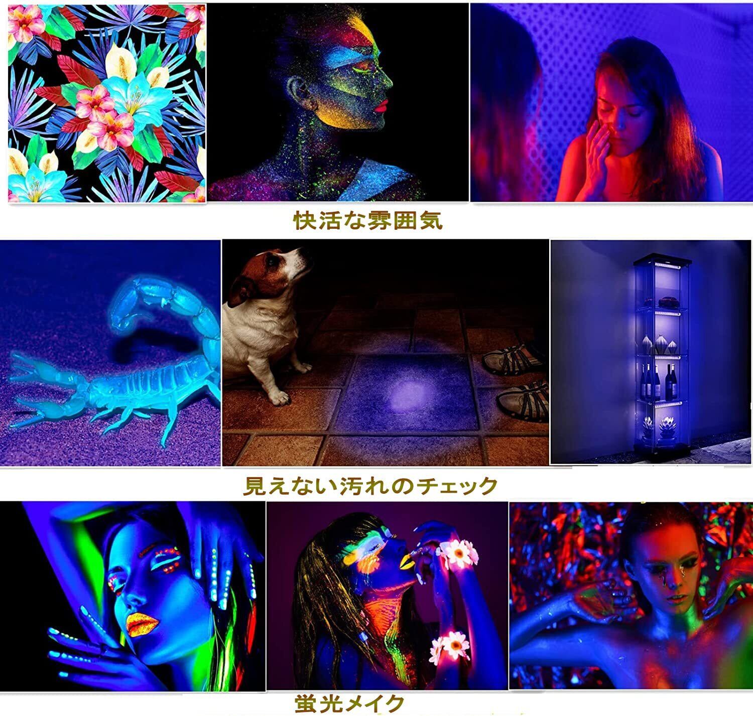 【ブラックライトー快活な雰囲気を演出する】材質:アルミ合金+ 高透過性PCカバー 超明るい紫色の光が、素晴らしいでエレガントな雰囲気を演出します。誕生日パーティー、ハウスパーティー、クリスマスパーティー、結婚式、ステージフロア、バー、ナイトクラブ、ディスコ、DJイベント、ライブショー野外フェス、店舗照明、に最適です。