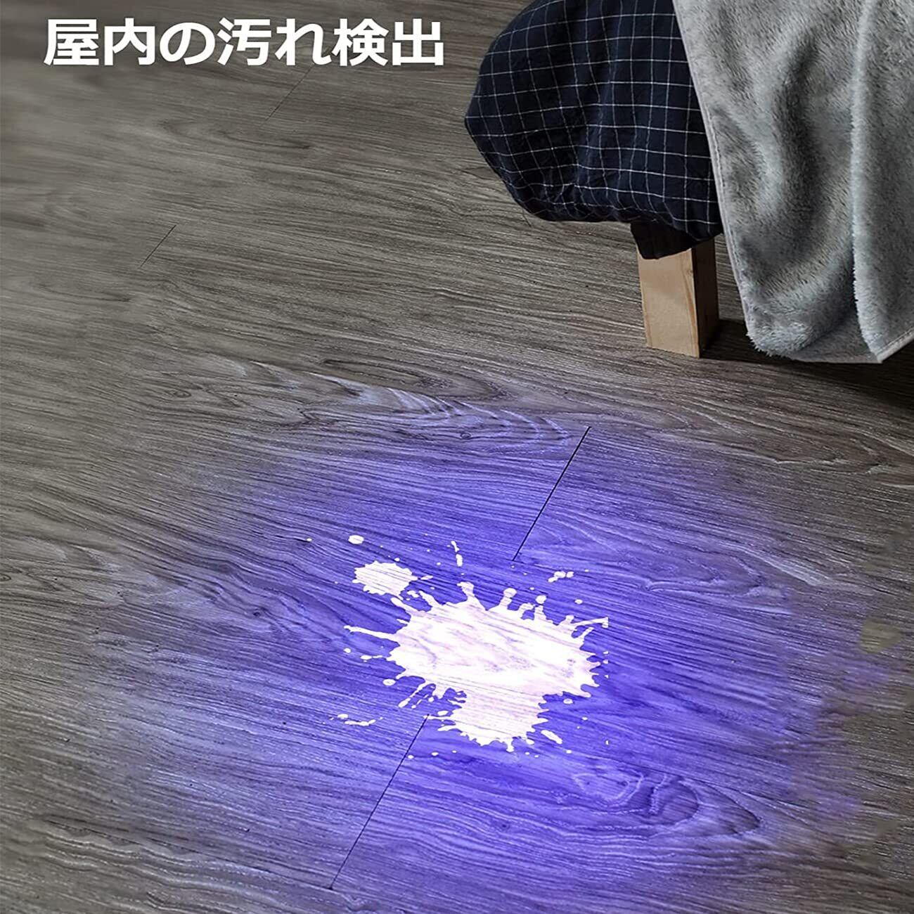 【ブラックライト:ペットのオシッコ汚れを発見】ペット・人間のオシッコ、油汚れがハッキリと解ります。肉眼では見えませんがブラックライトで照らすとホコリと油汚れがついてしまっているのが見えますので、お掃除のお供に役立ちます。メリットを最大化するために、カーペットクリーニングおよびペットの臭いを除去する製品と組み合わせることをお勧めします。