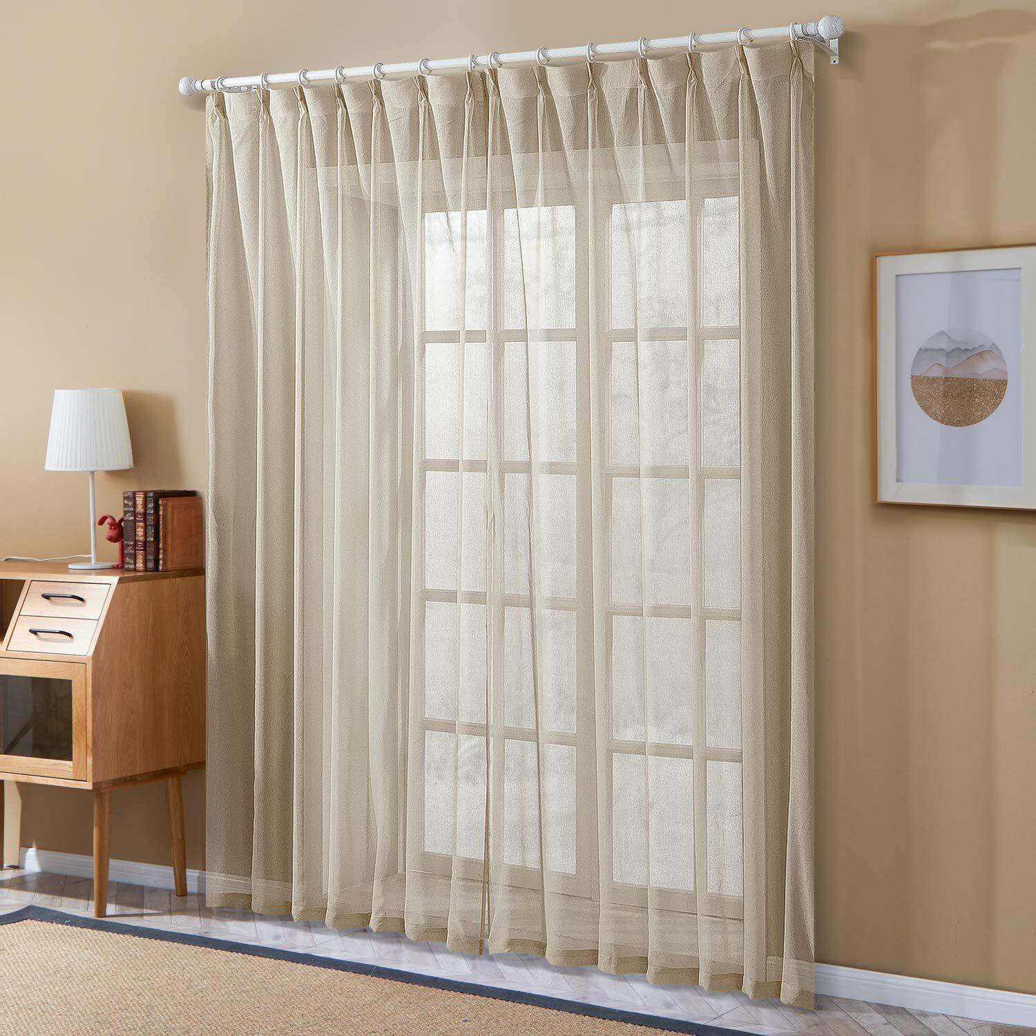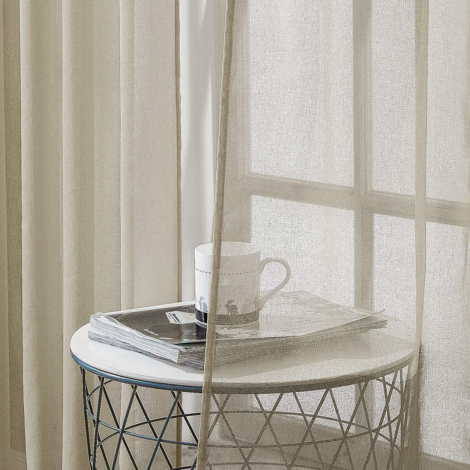 Topfinel レースカーテン UVカット 遮熱 断熱 省エネ 北欧 無地 おしゃれ 可愛い 洗える 幅100cm×丈178cm 2枚組 浅いコーヒー