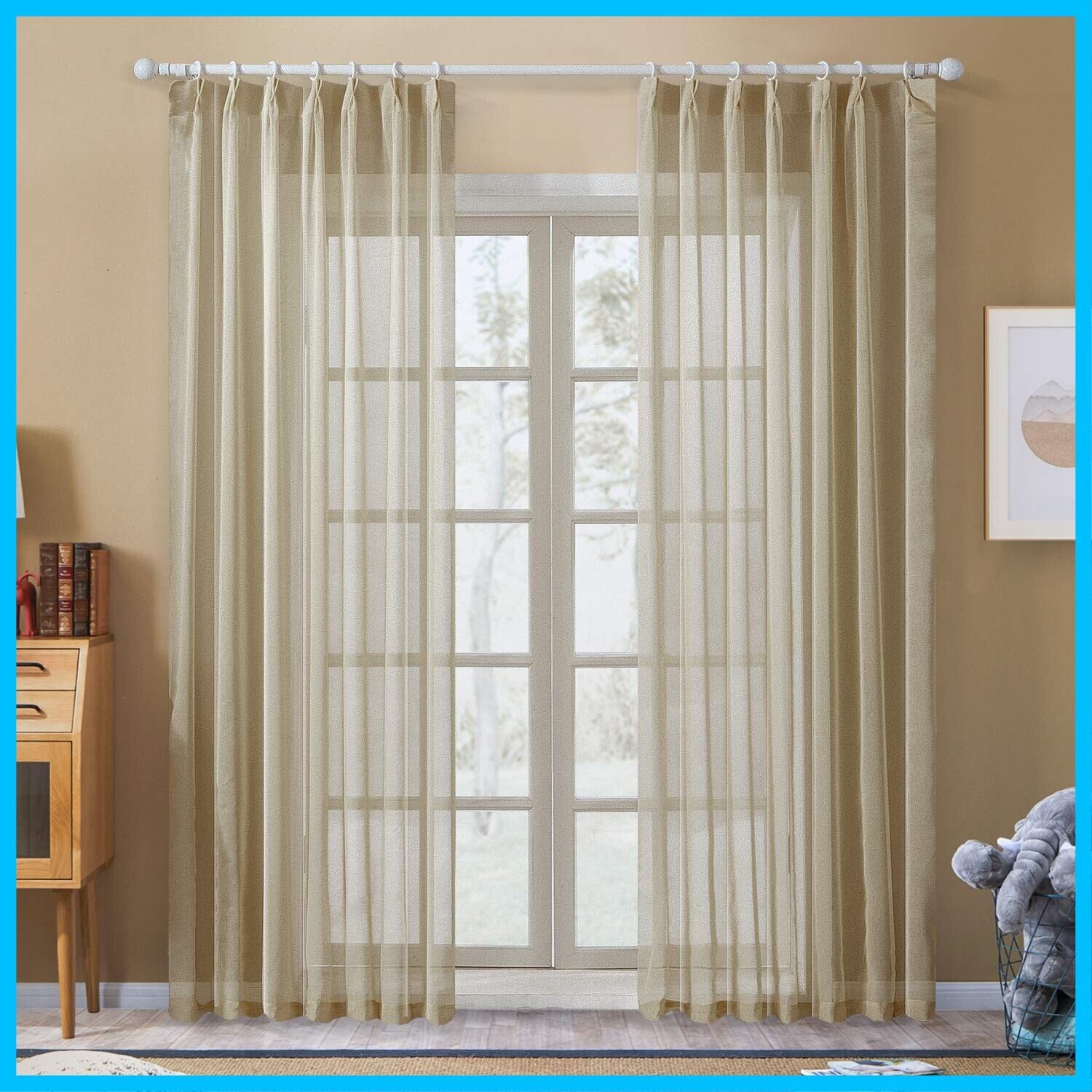 【取り付け簡単】:レースカーテンにプラスチック製のカーテンフックが付けてあったので、取り付けがあっという間です。※タッセルは付属しません。