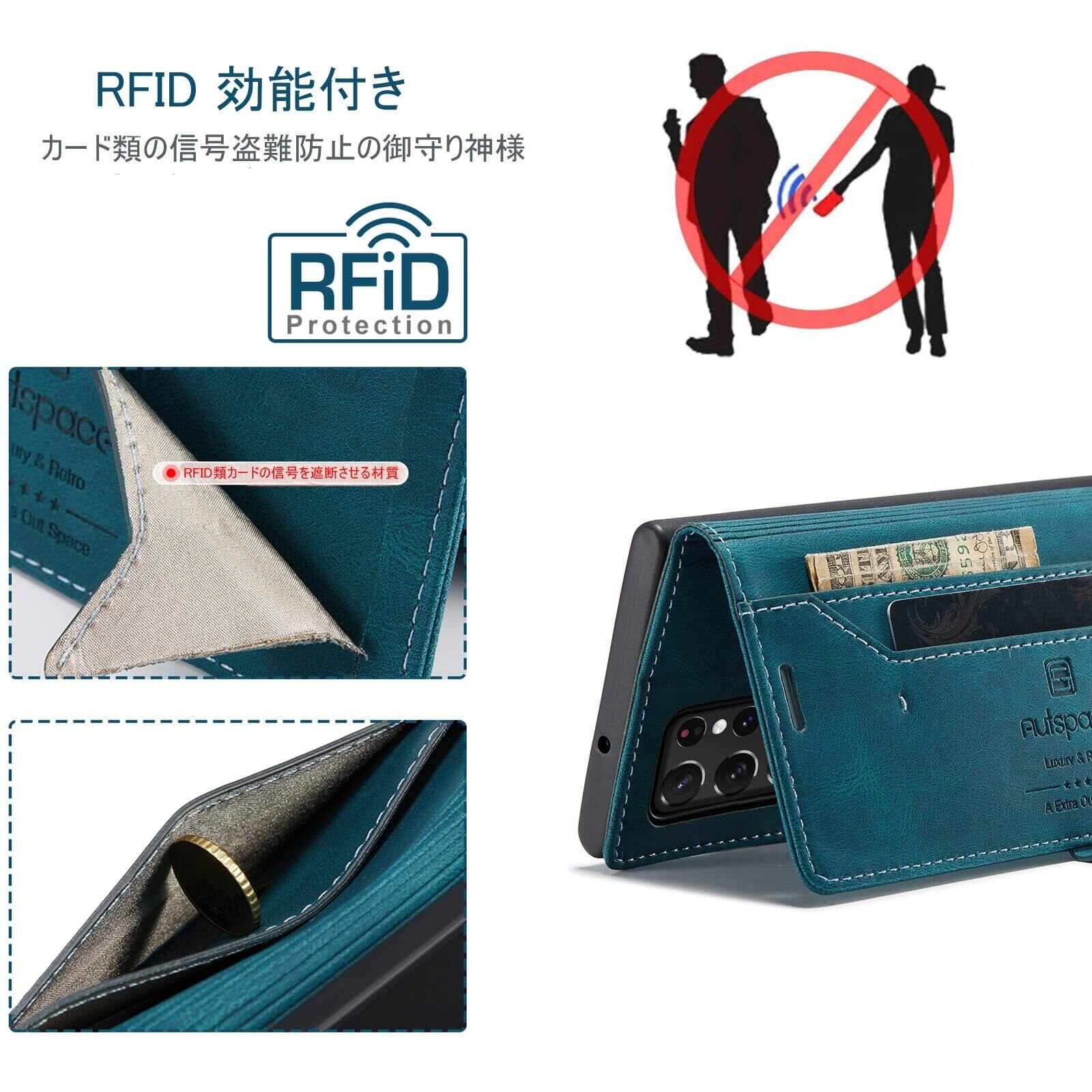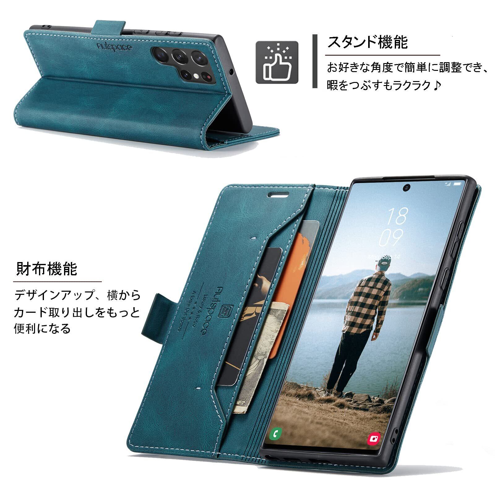 S22 Ultra ケース 手帳型 Galaxy S22 Ultra 5G ケース SC-52C docomo SCG14 au 対応 サムスン S22 ウルトラ ギャラクシー S22ultra スマホケース 携帯カバー case 内蔵マグネット RFID 磁気防止 スキミング防止 スタンド機能 肌触り良い 高質感 (Galaxy S22 ultra対応) ターコイズ