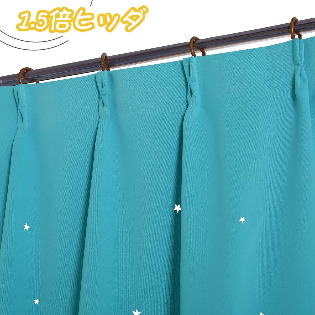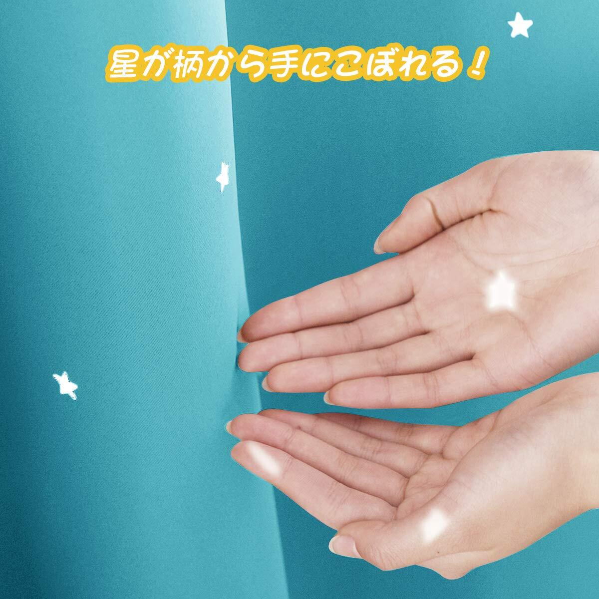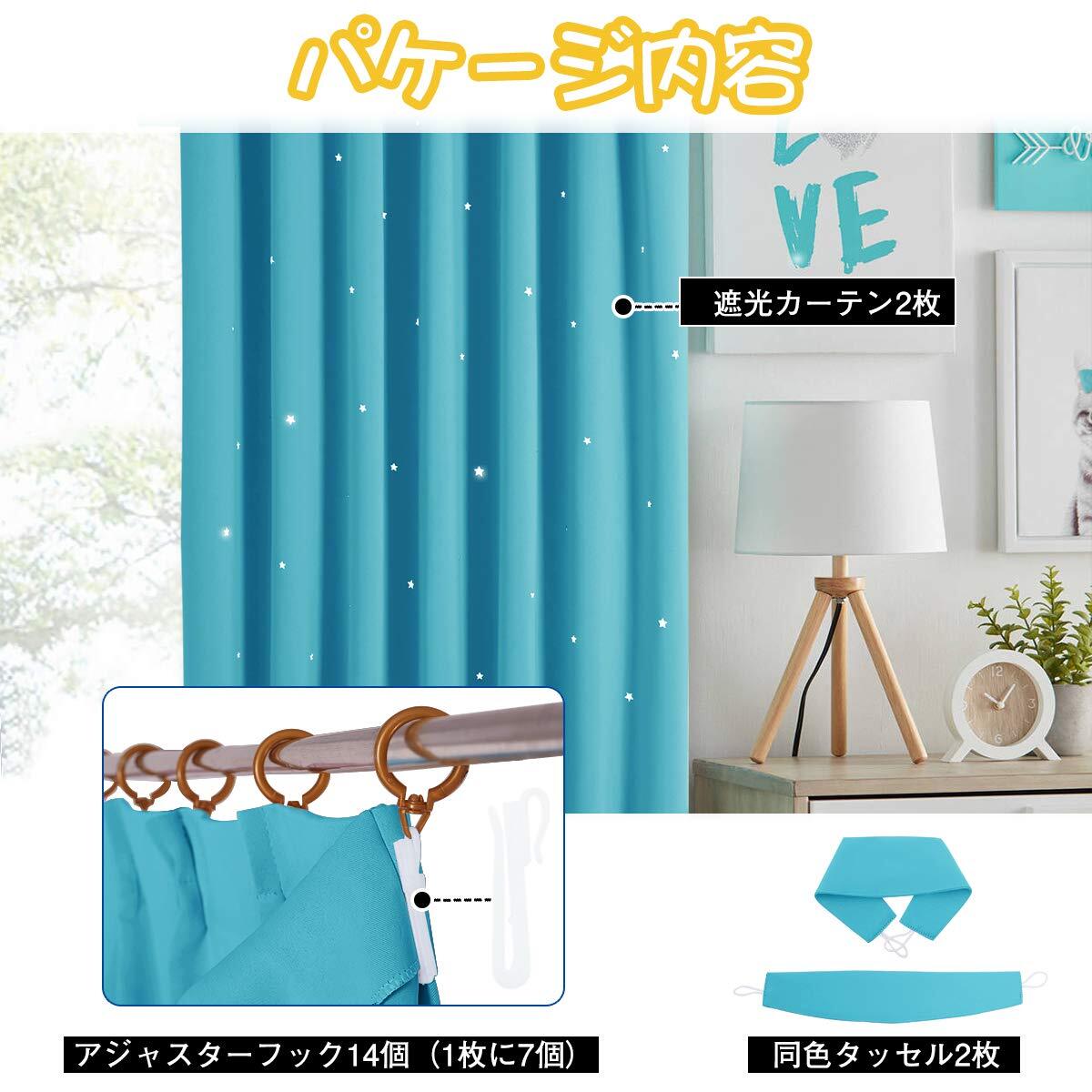 PONY DANCE 空色 男の子 カーテン 遮光 透かし彫り星柄 さらさら 節電対策 飾り キラキラ 寝室 居間 断熱 カーテン 2枚組 100x200cm タッセル付き