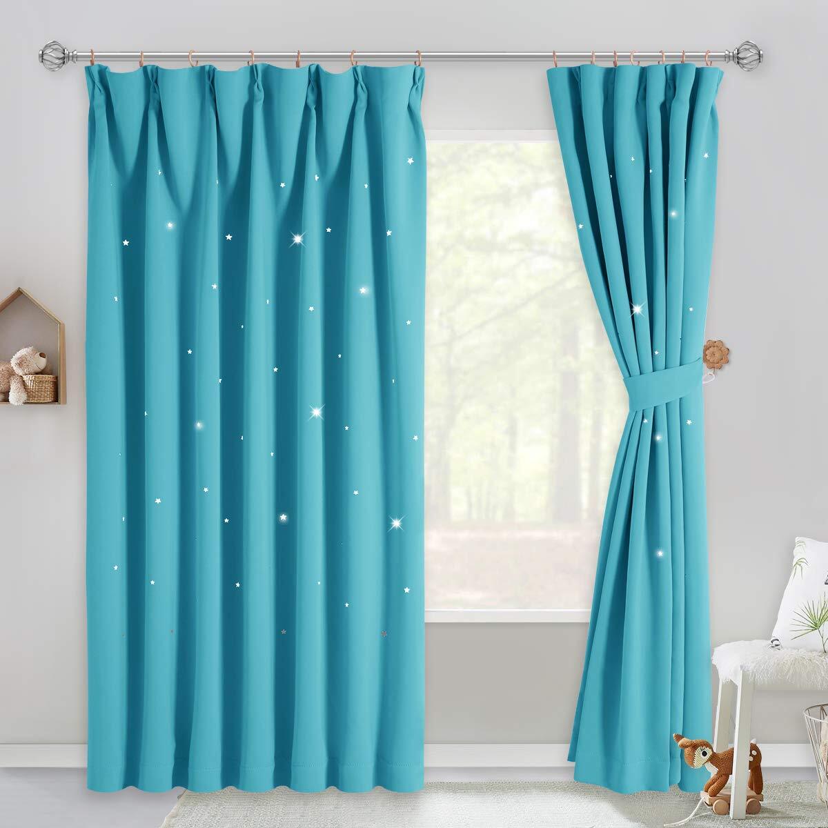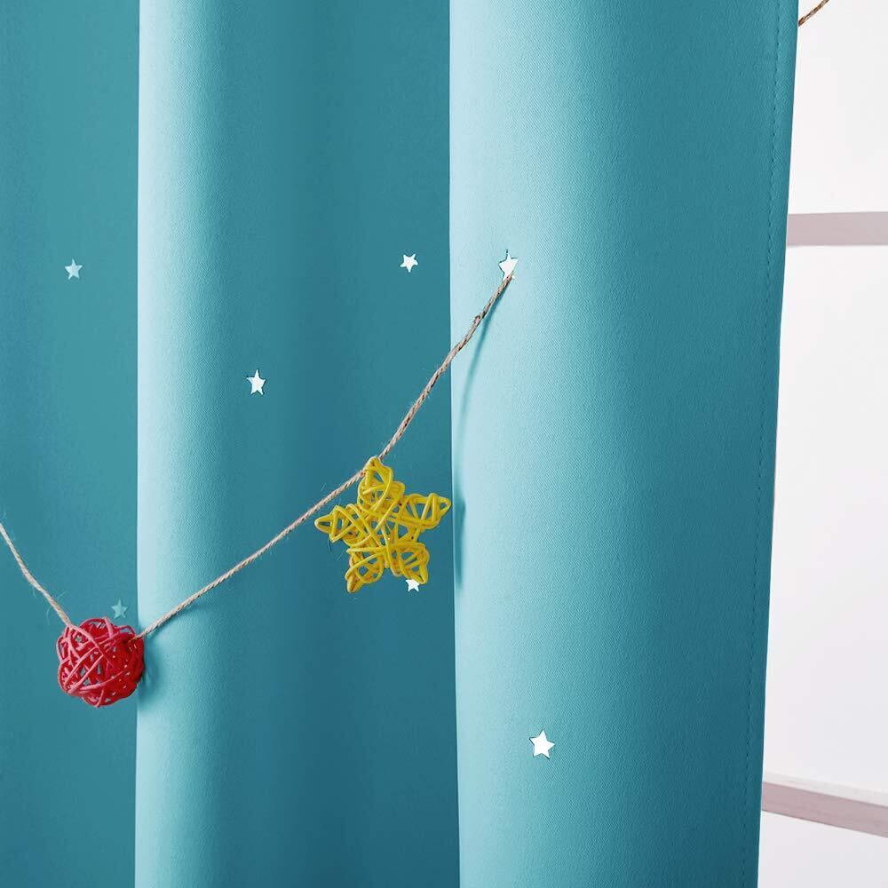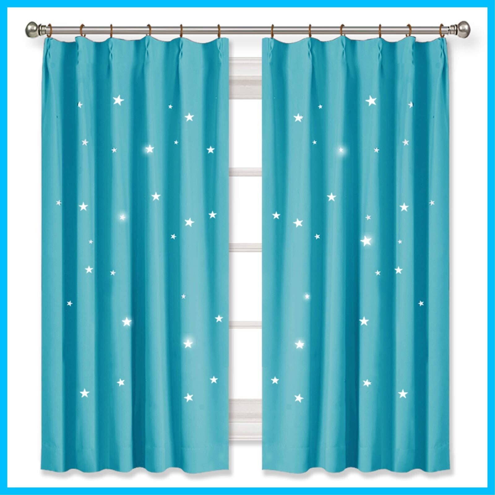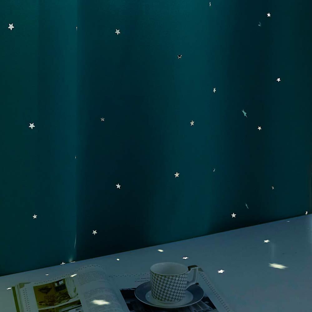 PONY DANCE 空色 男の子 カーテン 遮光 透かし彫り星柄 さらさら 節電対策 飾り キラキラ 寝室 居間 断熱 カーテン 2枚組 100x200cm タッセル付き