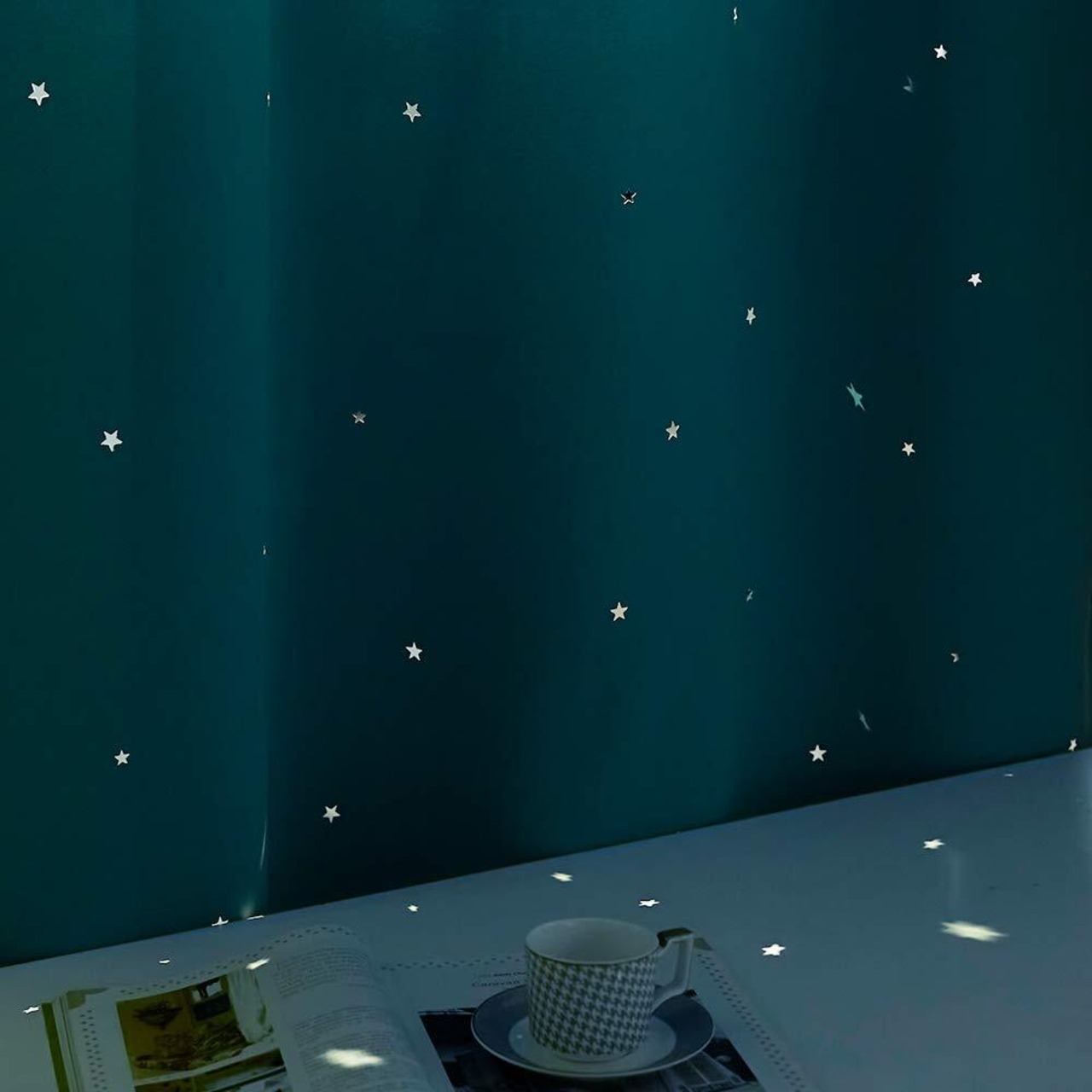 遮光: 星柄のない部分が一級遮光の標準を達しているので、カーテンの遮光効果は期待できます。真夏の強い日差しによって発生する熱量の遮断ができ、室内温度の上昇を抑えられます。同様、冬になると室外の寒気も防ぐことができ、その上省エネ効果も抜群です。※色により光の吸収率が異なる為、同じ1級遮光カーテンであっても明るさに違いがございます。