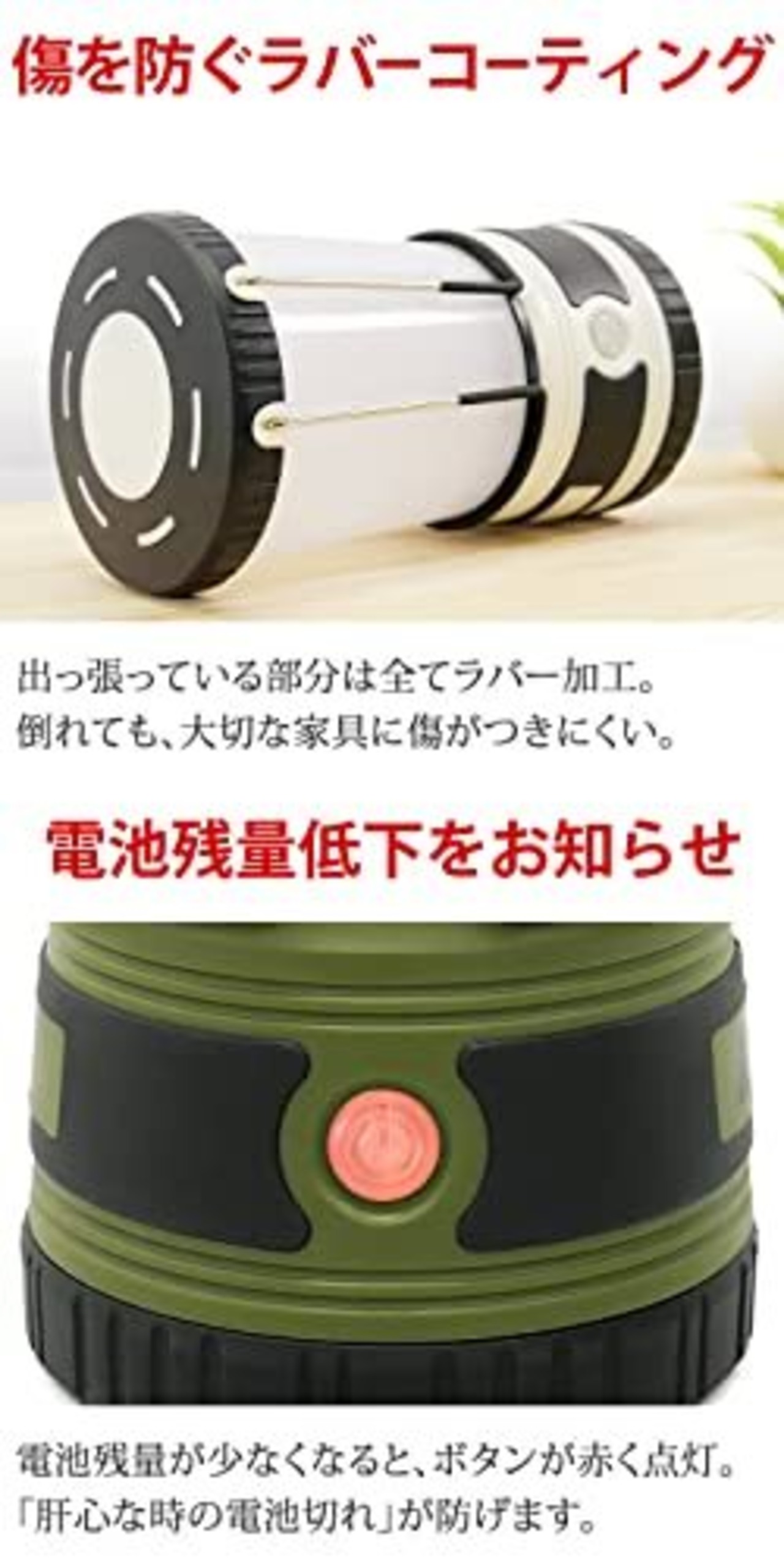 電池残量低下をお知らせ:電池残量が少なくなると、ボタンが赤く点灯。 「肝心な時の電池切れ」が防げます。