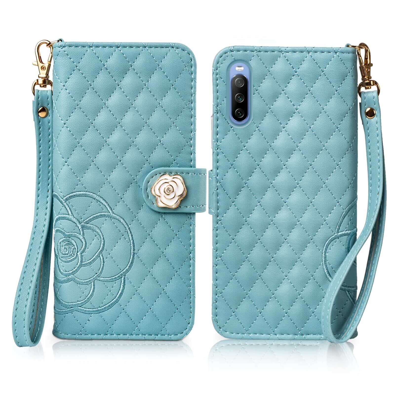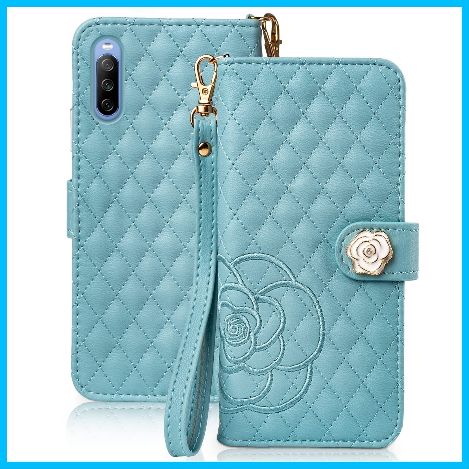 SZJAMIE Xperia 10 III ケース 手帳型 SO-52B SOG04 スマホケース 薔薇と山茶花刺繍 エクスペリア10III 手帳型ケース 花柄 おしゃれ 可愛い 女性向け 手触り柔らかい 耐衝撃 スタンド カード収納 財布型 全面保護 ストラップホール&ハンドストラップ付き プレゼントに最適 (Xperia 10 III (SO-52B/SOG04)対応, ブルー)