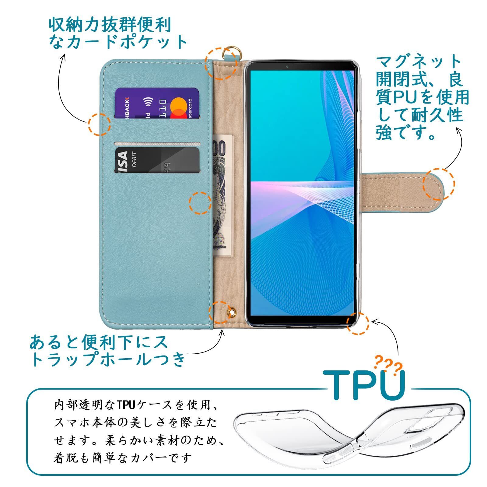 【対応機種】Xperia 10 III SO-52B SOG04専用全面保護 手帳型ケース。対応機種を間違いないようにご購入お願い申し上げます。インナーケースはソフトタイプなので、スマホの着脱が簡単ですし。