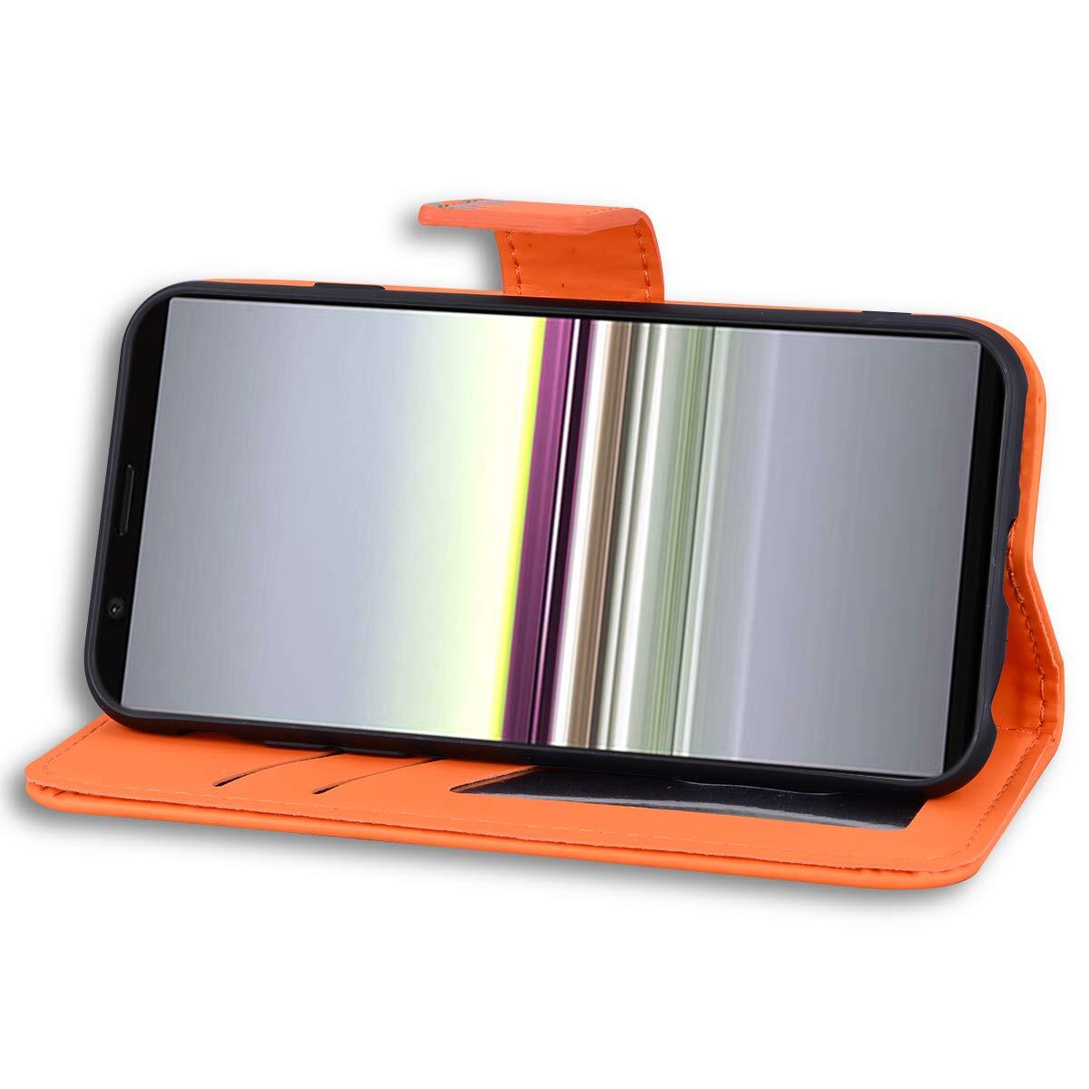 ソニー Xperia 5 ケース 手帳型 SO-01M sov41 カバー xperia5 スタンド機能 傷つけ防止 (オレンジ)