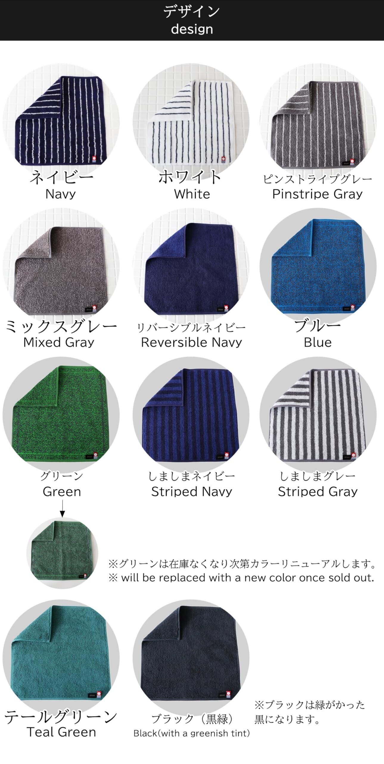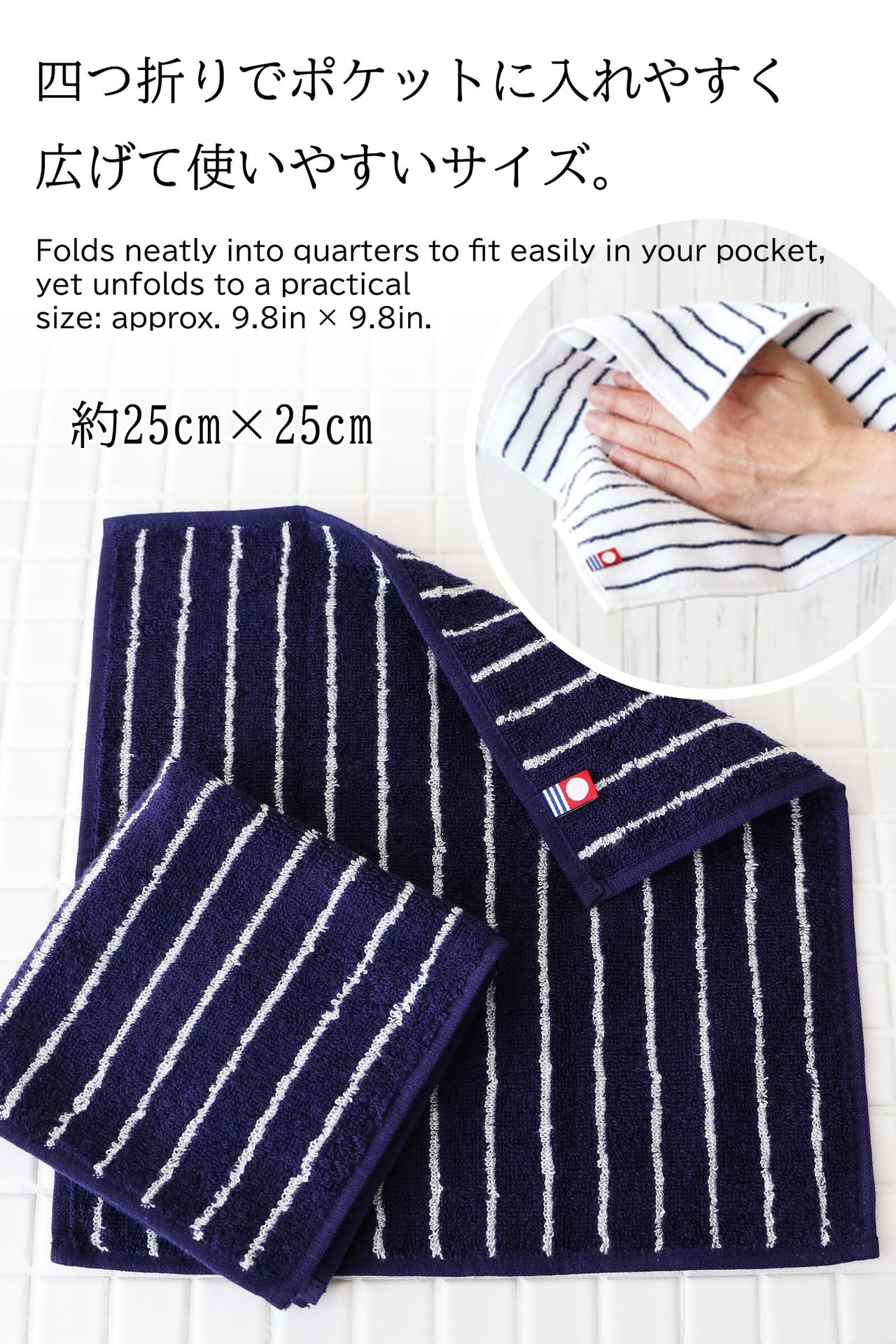 サイズ:約25cm×25cm 重量:約25g/枚 デザイン(認定番号):ネイビー(第2021-1129号)、ホワイト(第2022-1032号)、ミックスグレー(第2021-918号)、ピンストライプグレー(第2021-917号)、リバーシブルネイビー(第2022-1326号)、ブルー・グリーン(第2022-1325号)、しましまネイビー・しましまグレー(第2022-2634号)、テールグリーン・ブラック(第2023-2689号)、無地Aアソート4枚(第2021-945号) 素材:綿100% 生産地:日本(愛媛県今治市) ※モニターの発色の具合により実際のものと色が異なる場合がございます。 ※清潔でコンパクトな圧縮パックでお届けいたします。開封してしばらくすると空気を含み、元の状態に戻ります。配送状態により元に戻っている場合がございます。