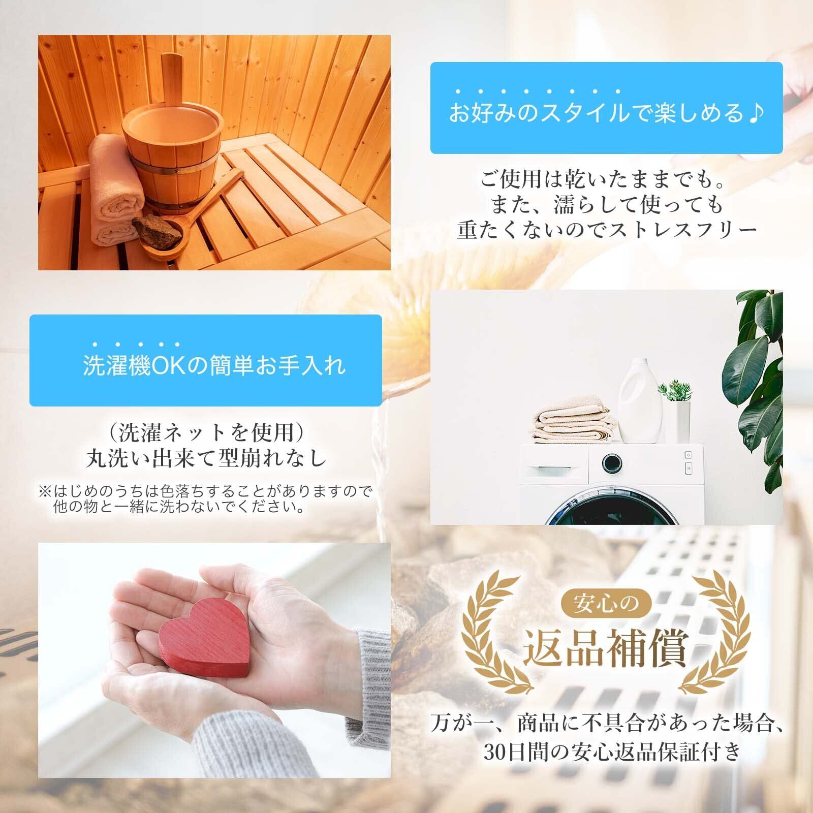 【サウナハットの特徴】 大きめ設計: 目元や耳元までしっかりカバーできる大きめサイズ。視界や音を程よく遮ることで、周囲を気にせずサウナに集中できます 厚手の今治タオル生地: 熱から髪や頭部をしっかり守り、乾燥やのぼせを防ぎます。暑さが苦手な方でも、快適に長時間サウナを楽しめます