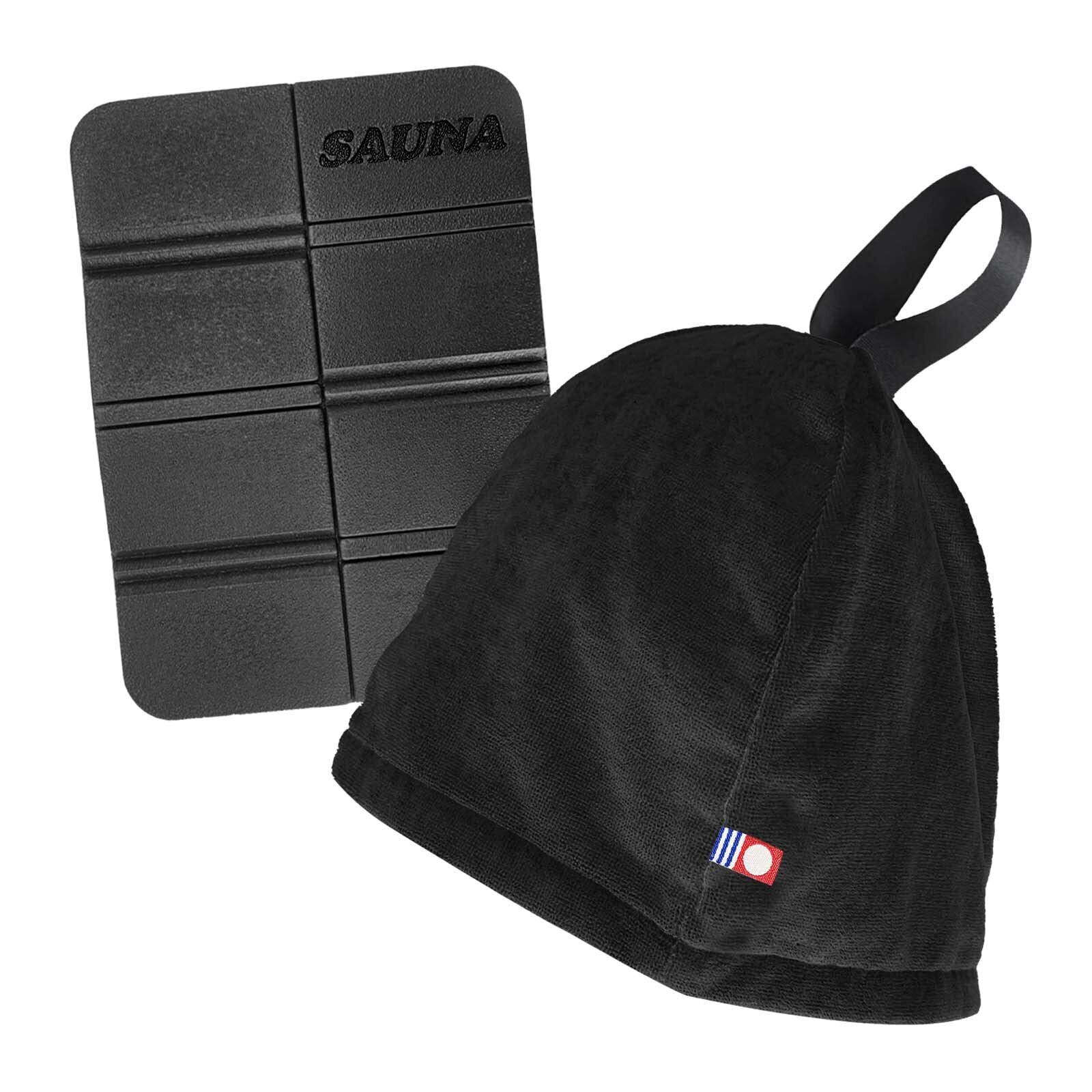 サウナハット サウナマット サウナグッズ メンズ レディース 今治タオル サウナ サウナセット 大きめ 洗濯可能 (ブラック 無地)