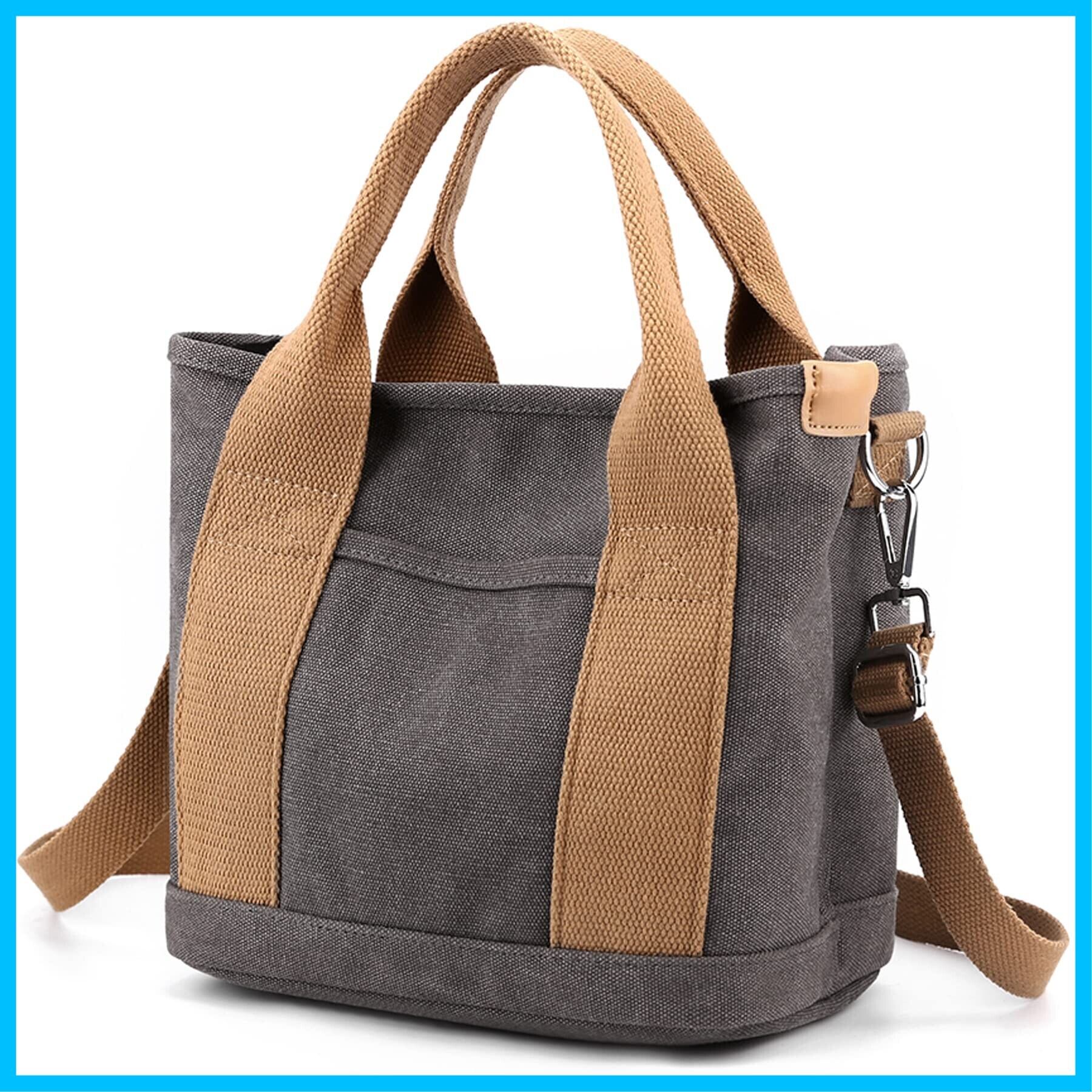 トートバッグ レディース 小さめ キャンバス 仕切り ハンドバッグ ショルダーバッグ おしゃれ かわいい 軽量 旅行 通勤 自立 (grey, S)