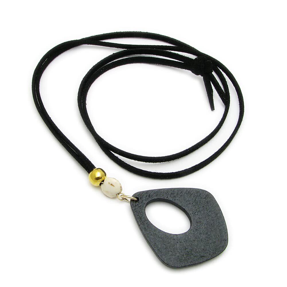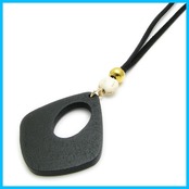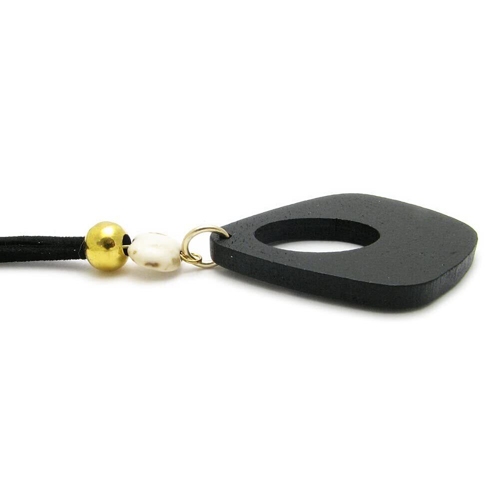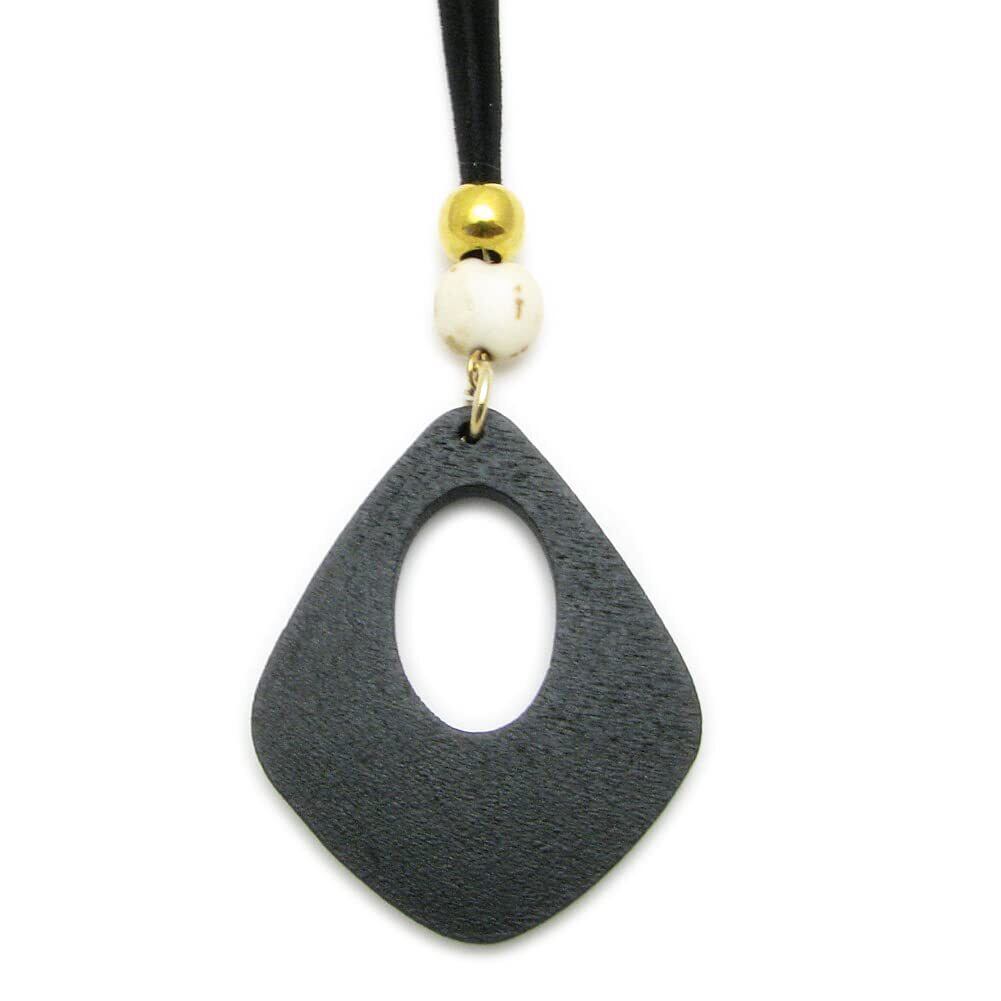 ネックレス レディース 木製 木 ウッドトップ レザー 涙 雫 ドロップ ハウライト 天然石 ペンダント JN10020 (ブラック)