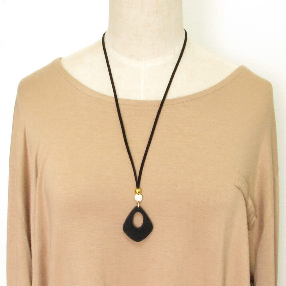 ウッドのしずく形トップが優しい印象のレザーネックレス