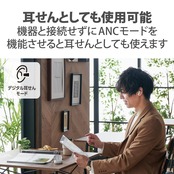 デジタル耳せんモードは、音楽などが聴きたいわけではないけれど、周囲の騒音が気になる時、スマートフォンなどの機器と接続せずにANCモードが機能し耳せんとして使用できます。