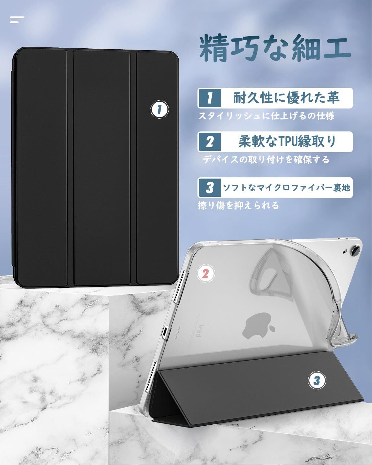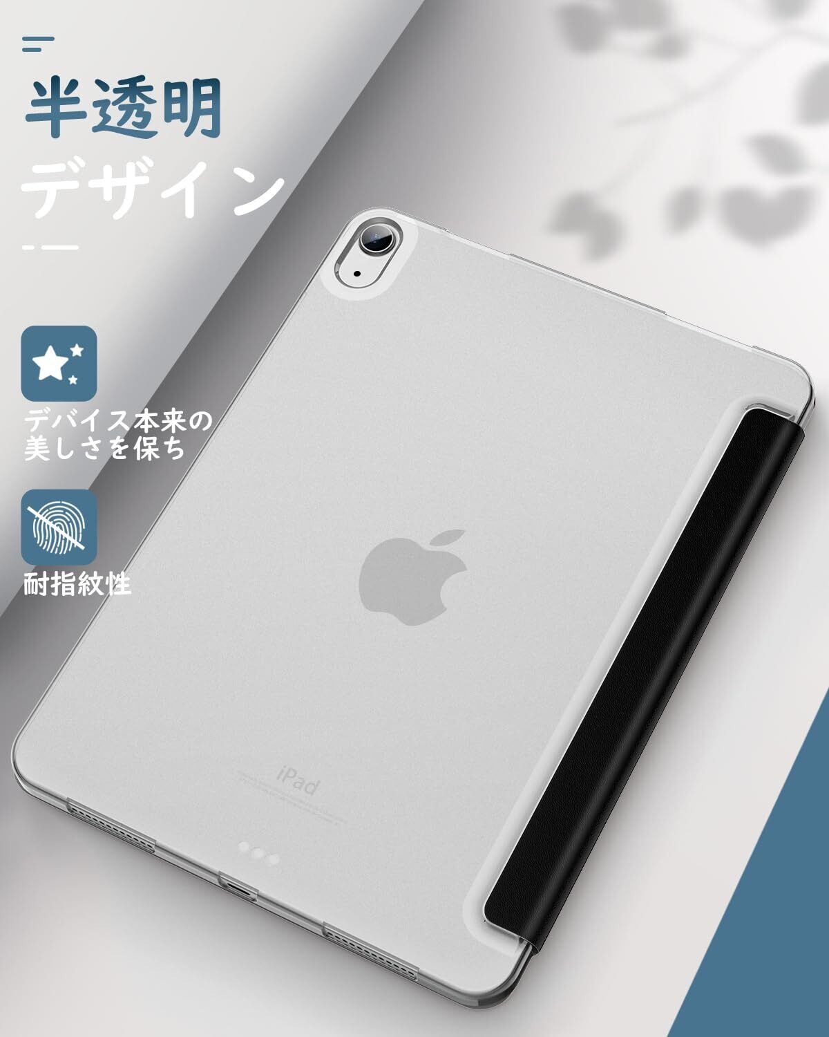 iPad Air 11インチ 第7世代/第6世代 ケース 2025/2024 Dadanism iPad Air 11 M3/M2 2025年新モデル iPadAir 5 Air 4 10.9インチ カバー Air 11インチ/第5世代 第4世代 ケース オートスリープ PencilPro/第2世代ワイヤレス充電 PU+TPU 三つ折り スタンドケース 半透明 ソフト ブラック