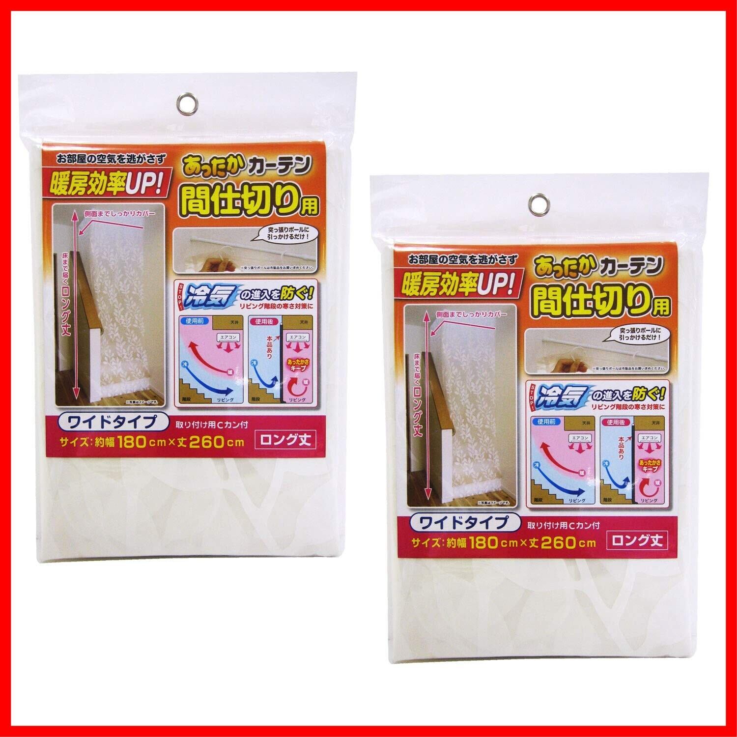 ワイズ あったかカーテン 間仕切り用 ワイド 幅180×丈260cm ×2個セット SX-073 | 寒さ対策 リビング 吹き抜け 階段 区切 空間 分ける 屋内 室内 シート 断熱