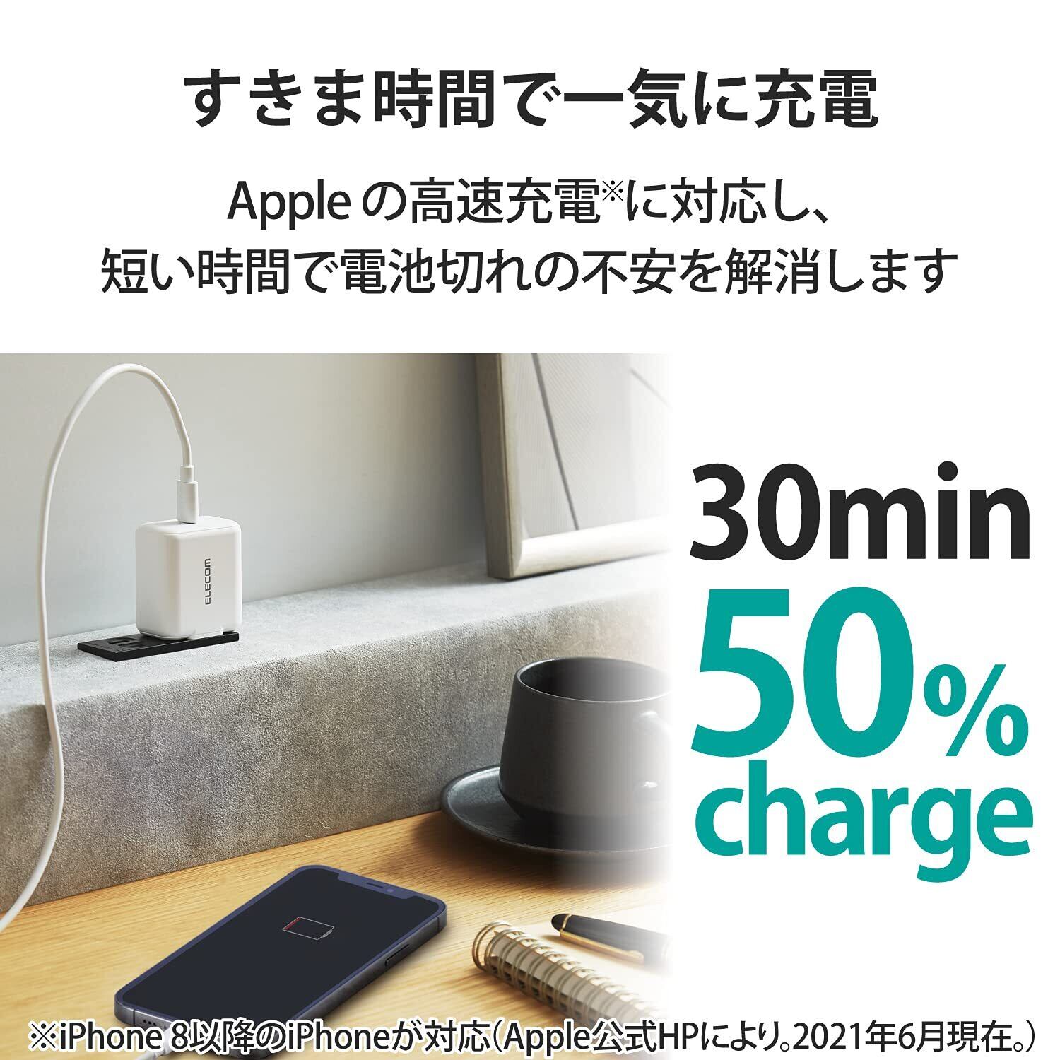 USB Power Delivery 認証済みのUSB Type-C(TM)(USB-C(TM))ポートを搭載し、対応するスマートフォン、タブレットなどを超高速充電できるUSB AC充電器です。
