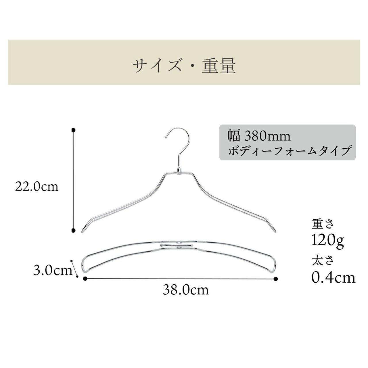 【サイズ】肩幅38.0cm×肩先厚3.0cm×高さ22.5cm×太さ0.4cm (1本) 【本体重量】120g(1本)
