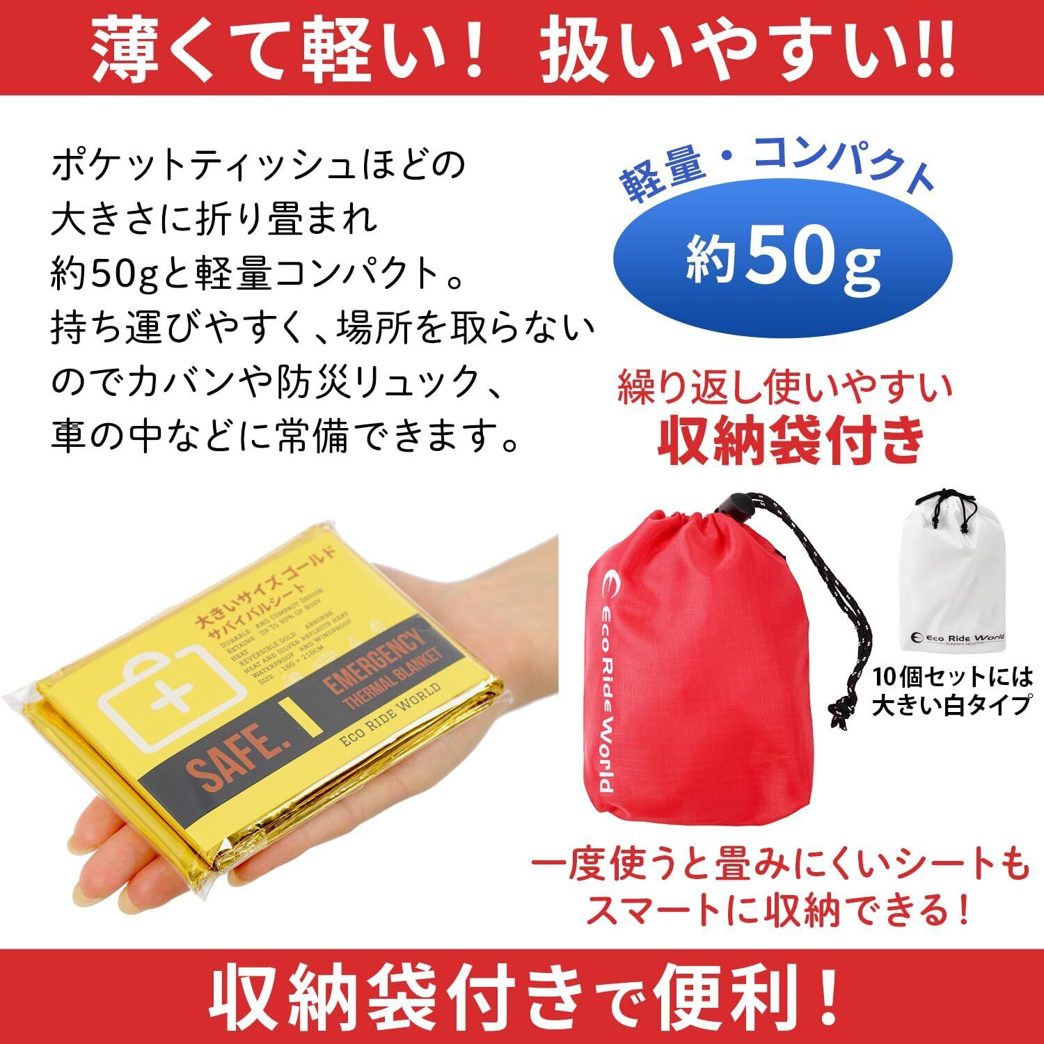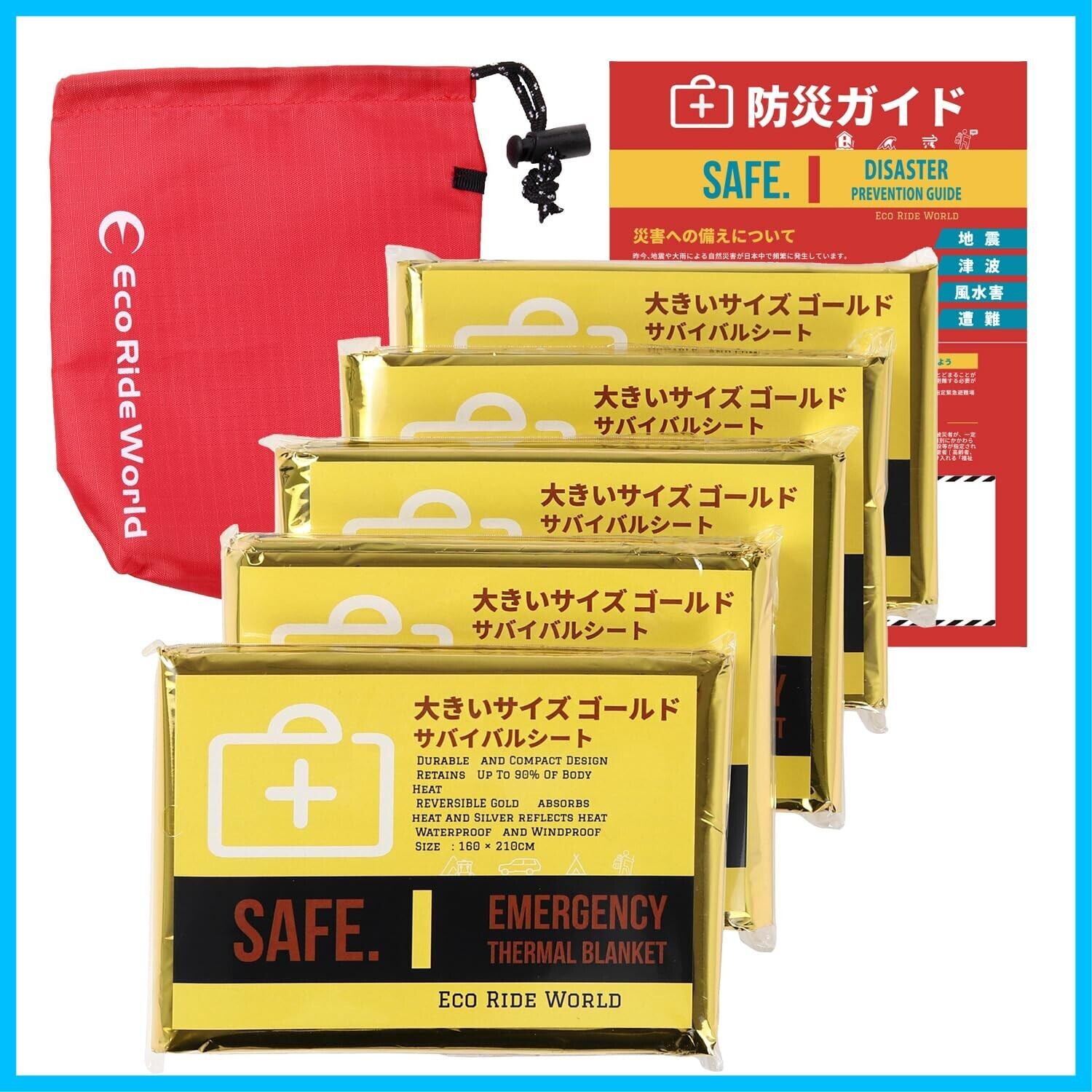 Eco Ride World アルミシート アルミブランケット 防災 サバイバルシート 備蓄 ゴールド 大きい サイズ sabage-129-03
