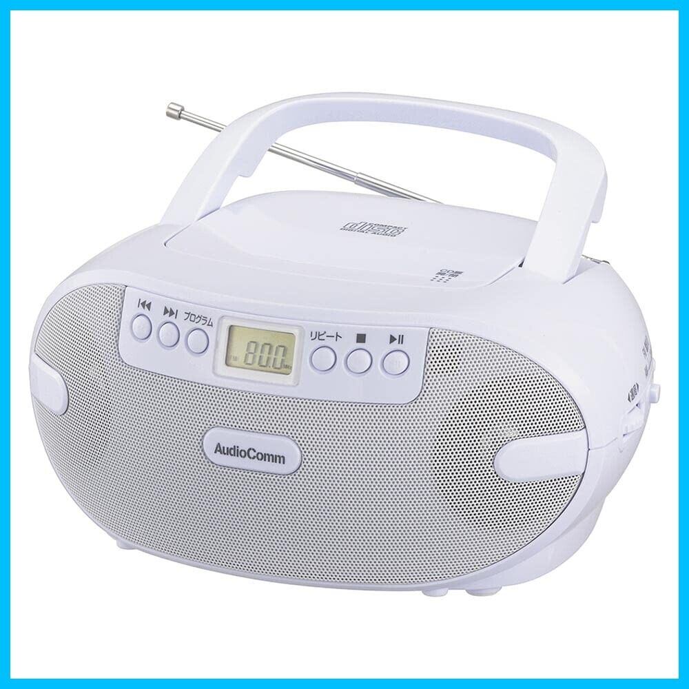オーム電機AudioComm CDラジオ CDプレーヤー ポータブル コンパクト ステレオ コンセント 電池式 ホワイト 英会話 語学学習 英検対策 リスニング ヒアリング対策 TOEIC対策 幼児教育 ダンス ラジオ体操 RCR-875Z 03-5036 OHM