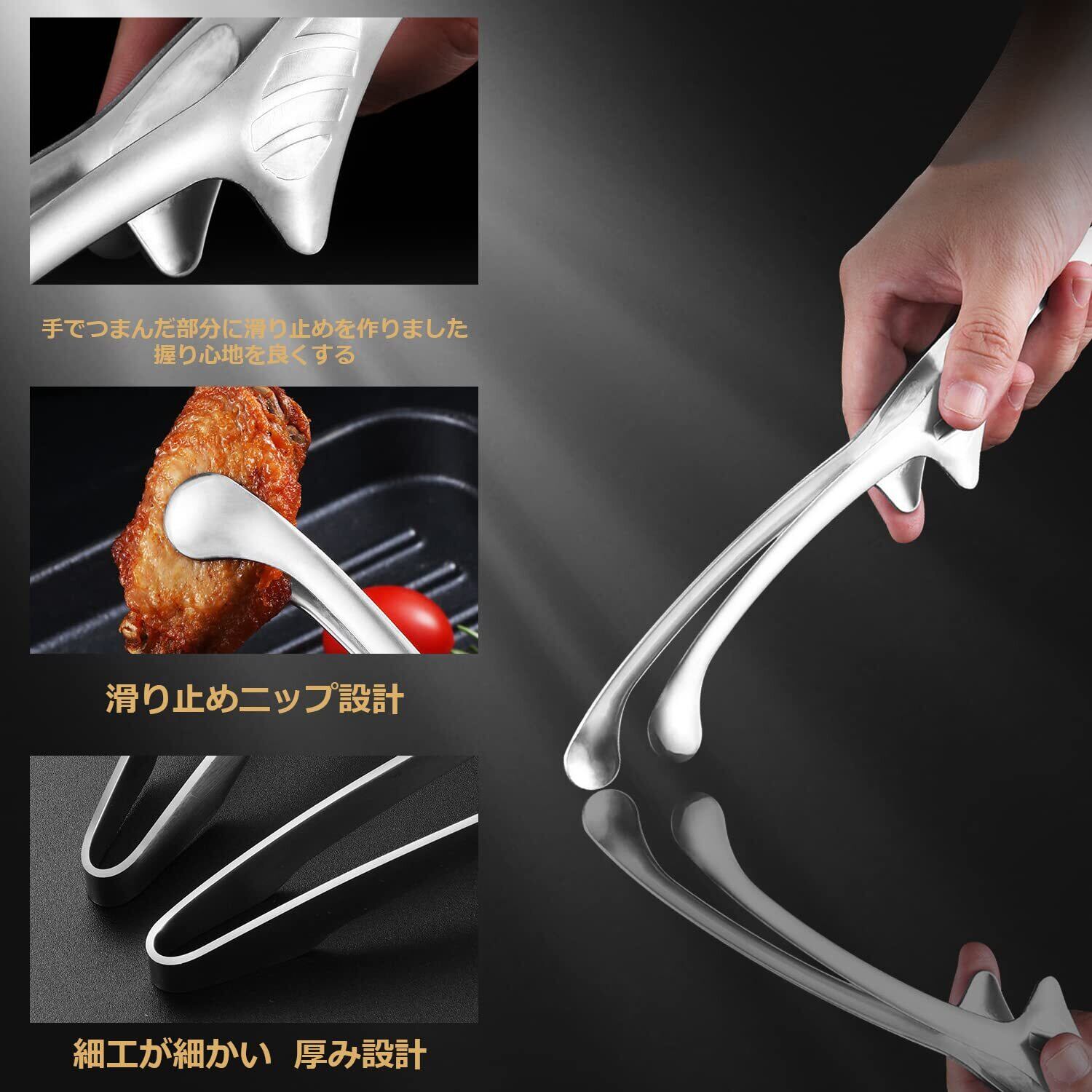 【幅広い用途トング】●キッチン用トング:食洗機対応で日々の調理に。●アウトドアトング:軽量設計でトング キャンプに最適。●業務用焼肉トング:焼肉店/ビュッフェの頻繁な使用に耐える耐久性。●調理用トング:鍋料理やサラダ盛り付けまで多用途トングです。※韓国 焼肉トングとしても、和食レストランの揚げ物トングとしても幅広くご活用いただけます。