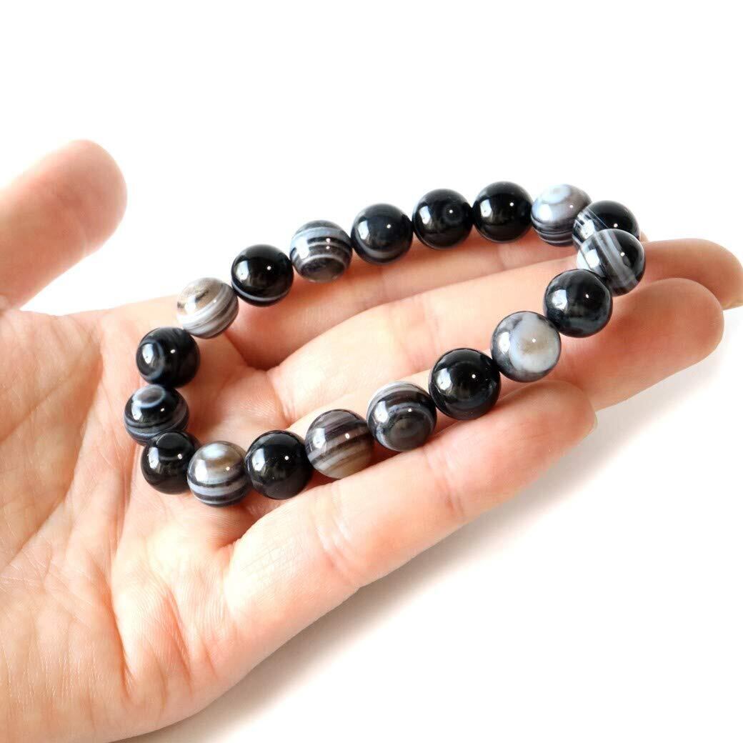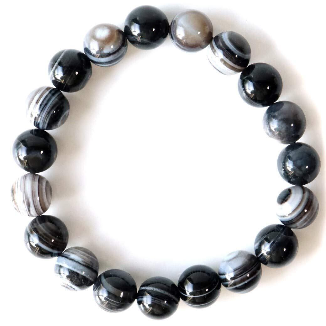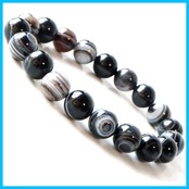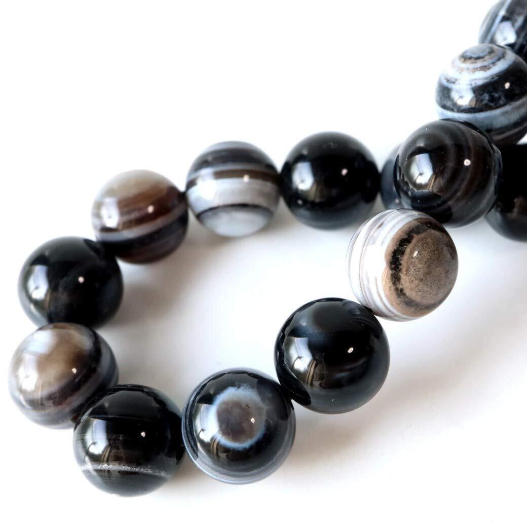 天眼石は、瑪瑙(めのう)の一種で、黒、白、茶、灰色の縞模様が特徴の天然石です。