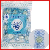 原材料:水飴(国内製造)、砂糖、プロポリスエキス、岩塩、オリゴ糖、レモン果汁/ビタミンC、酸味料、香料