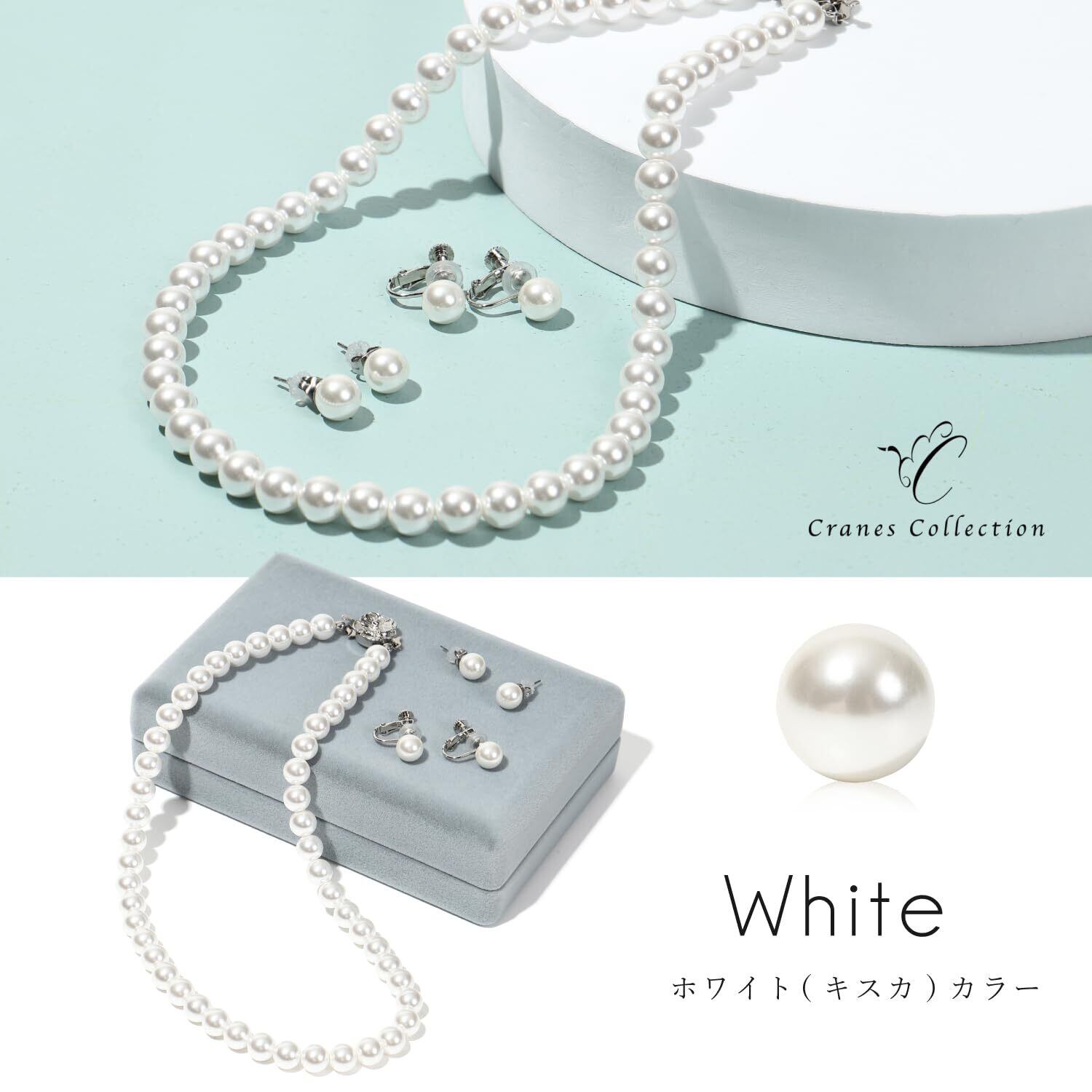 【素材・カラー・セット内容】 ・ ネックレス金具:真鍮ロジウムメッキ、パール:天然貝パールを使用 ※天然の貝殻を成形し、パールエッセンスを幾重にも重ねた高品質な人工パールです。上品な輝きと豊かなツヤ、8mmの存在感あるサイズは本真珠に劣らない真珠です。貝パールは汗や変色にも強く、フォーマルから日常使いまで幅広く活躍します。 ・ネックレス:日本製糸(ポリエステル)使用 ・カラー:ナチュラルホワイト、グレー、ブラックグリーン ・イヤリング金具:真鍮ロジウムメッキ+シリコンパッド付き