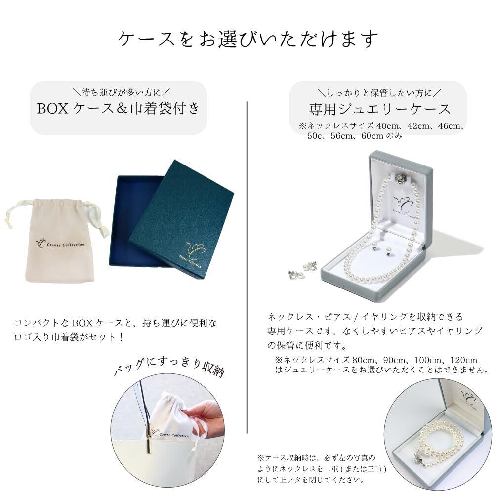 【選べるケース】 「コンパクトなBOXに持ち運びに便利な巾着セット」または「保管に便利、国産高級ジュエリーケースセット」をお選びいただけます。