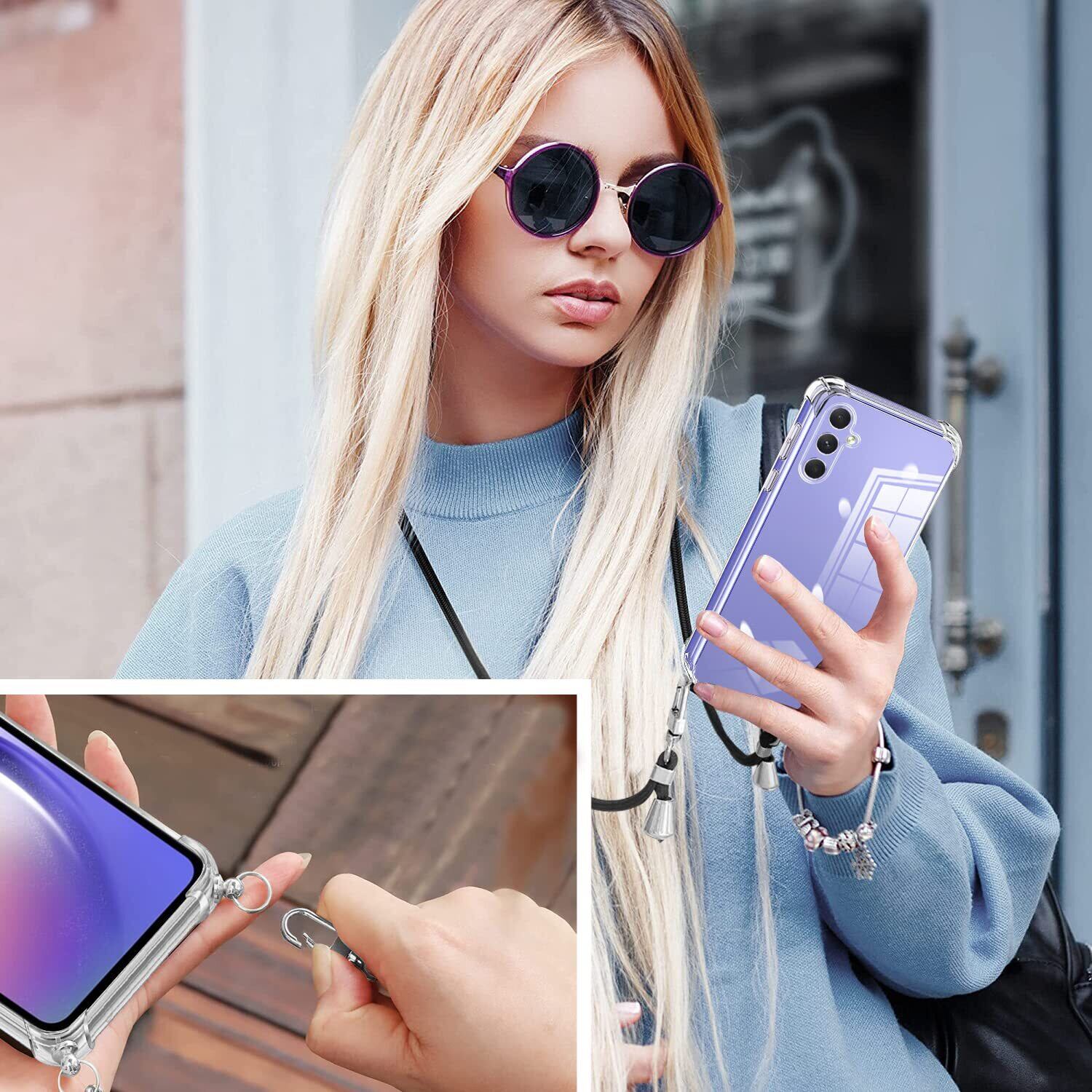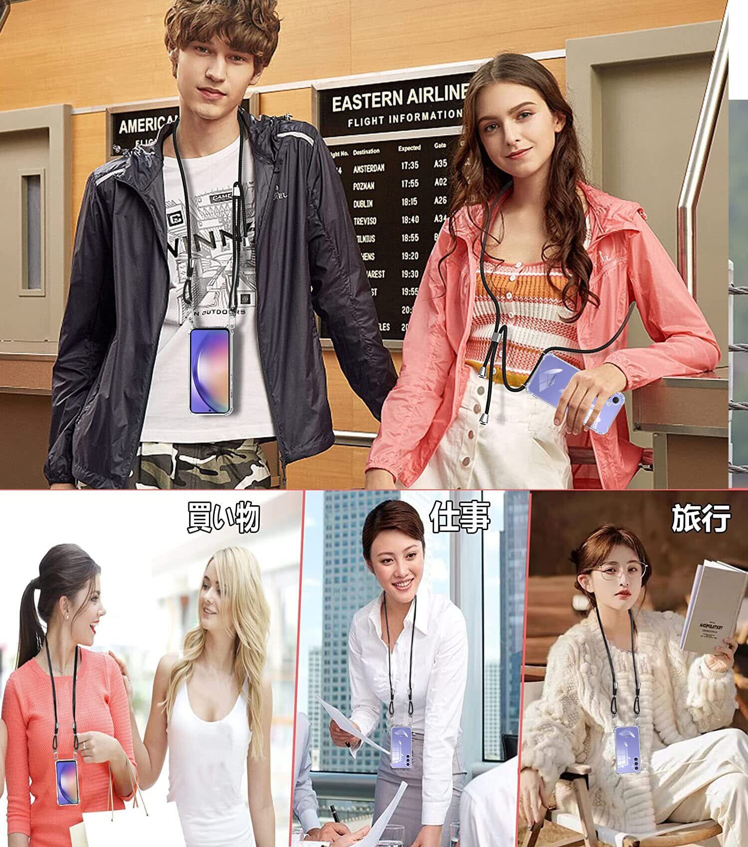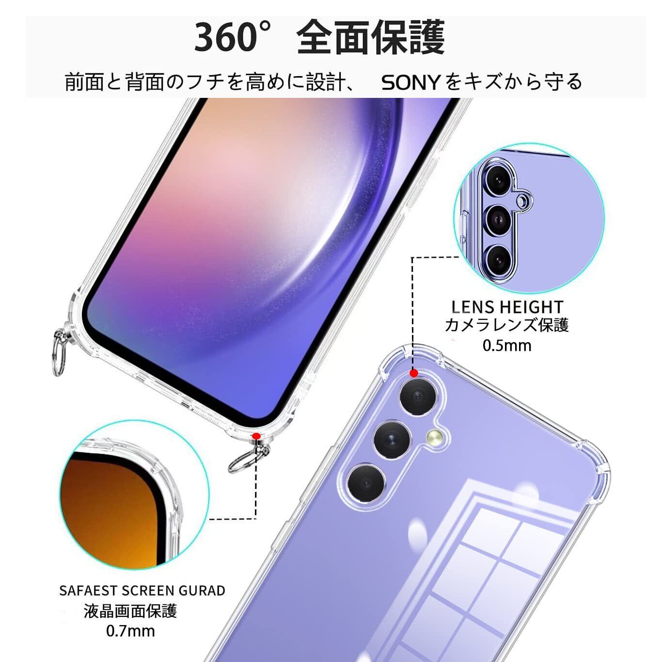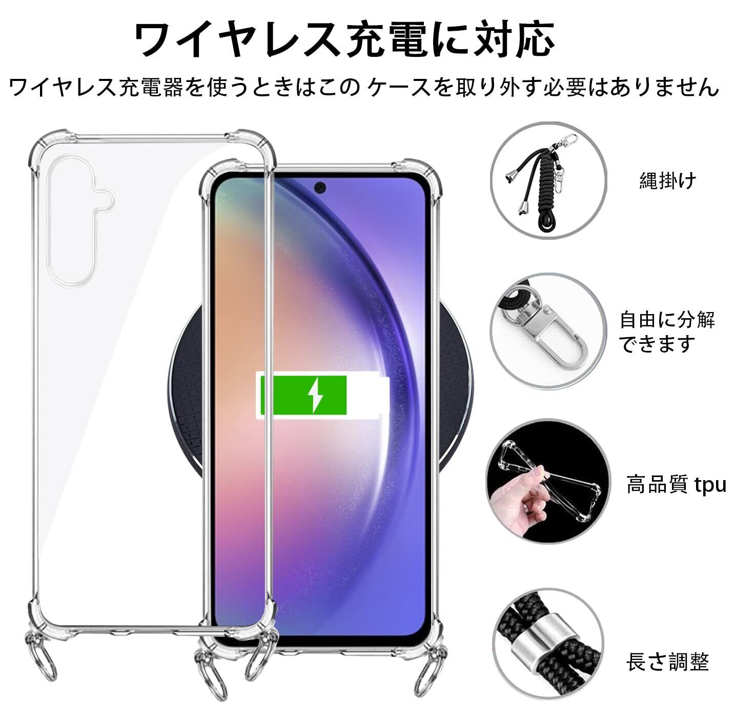 サムスン ギャラクシー A54 ケース SC-53D SCG21 クリア ショルダー 耐衝撃 バンパー TPU 肩掛け 斜めかけ 首掛け 縄掛け A54 5Gカバー 透明 ック ストラップ付き 斜めがけ 織りストラップ付き 調節可能なショルダー