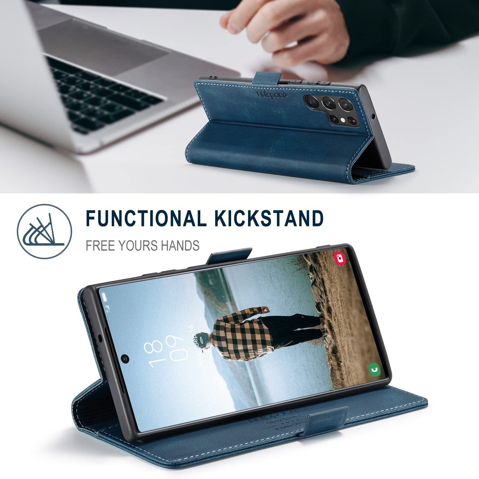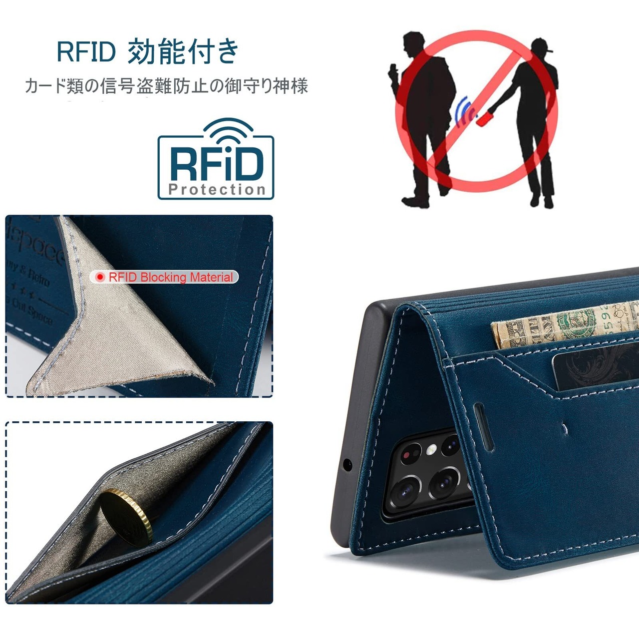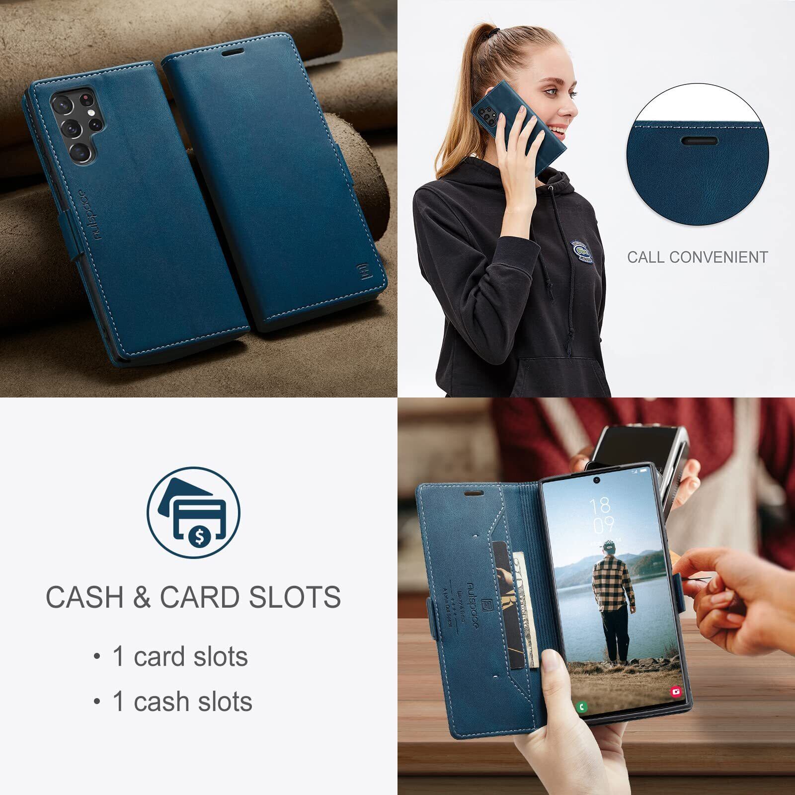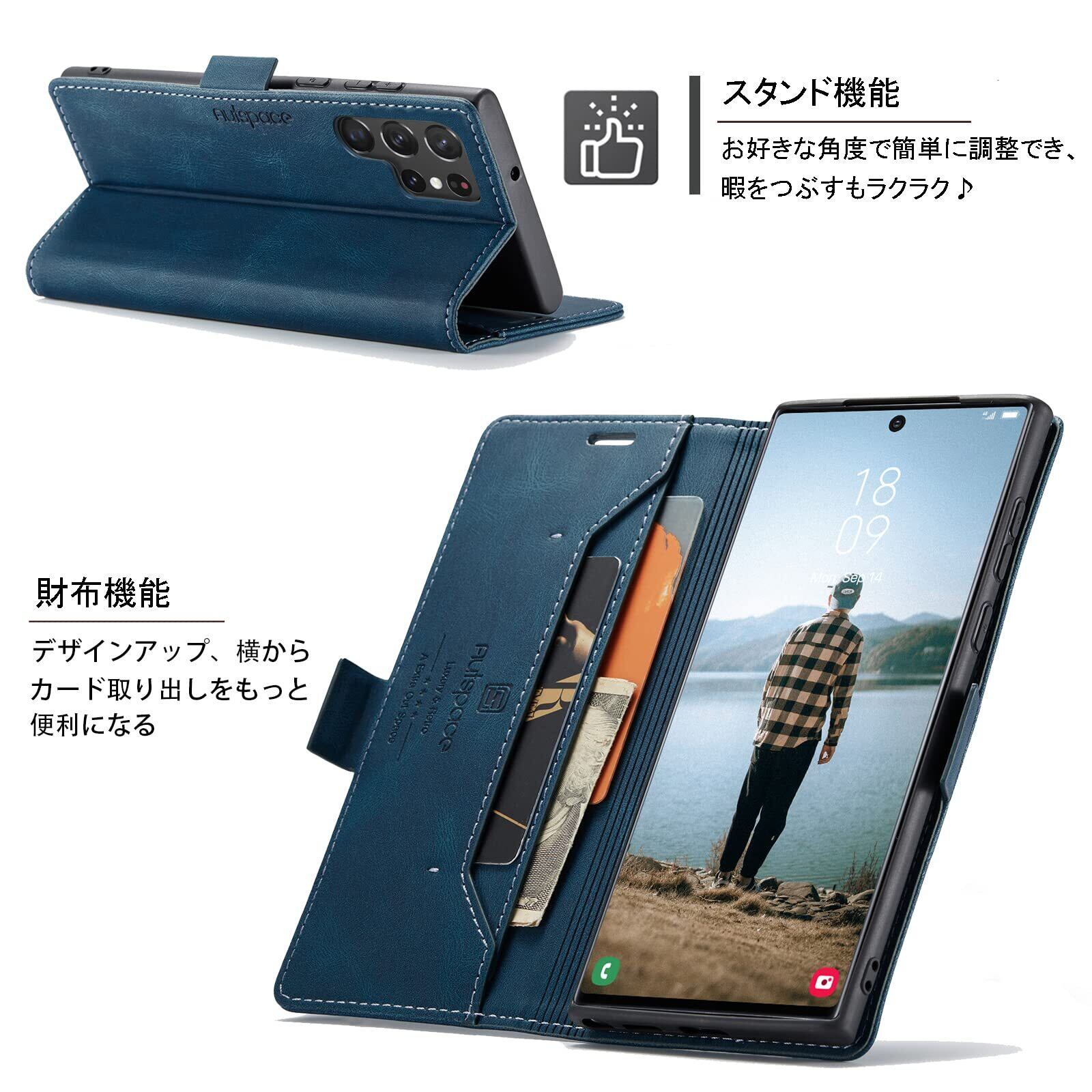 S22 Ultra ケース 手帳型 Galaxy S22 Ultra 5G ケース SC-52C docomo SCG14 au 対応 サムスン S22 ウルトラ ギャラクシー S22ultra スマホケース 携帯カバー case 内蔵マグネット RFID 磁気防止 スキミング防止 スタンド機能 肌触り良い 高質感 (Galaxy S22 ultra対応) ネイビー