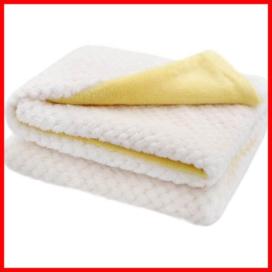 RIKMSS ペット用 毛布、 ブランケット、 犬 猫用 毛布、タオル、マット、クッション、ペット ベッド 防寒用 布団 、ソフト、暖かい ふわふわ 通気性 四季適用、二重布厚み版 (M:60x 80cm、白/黄