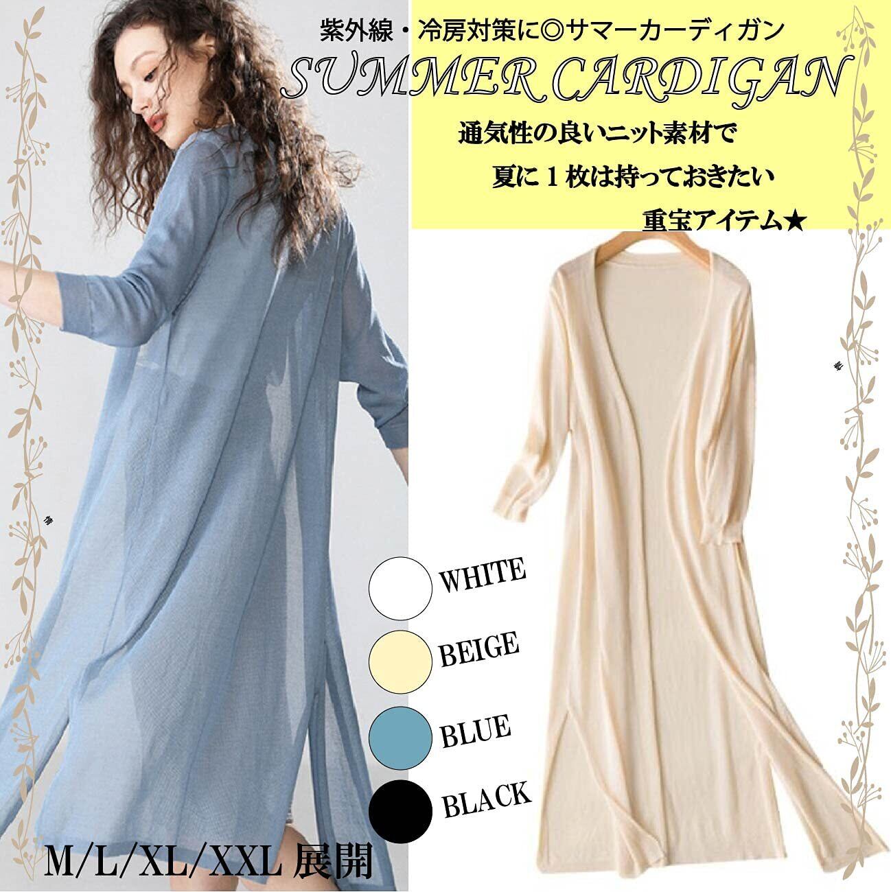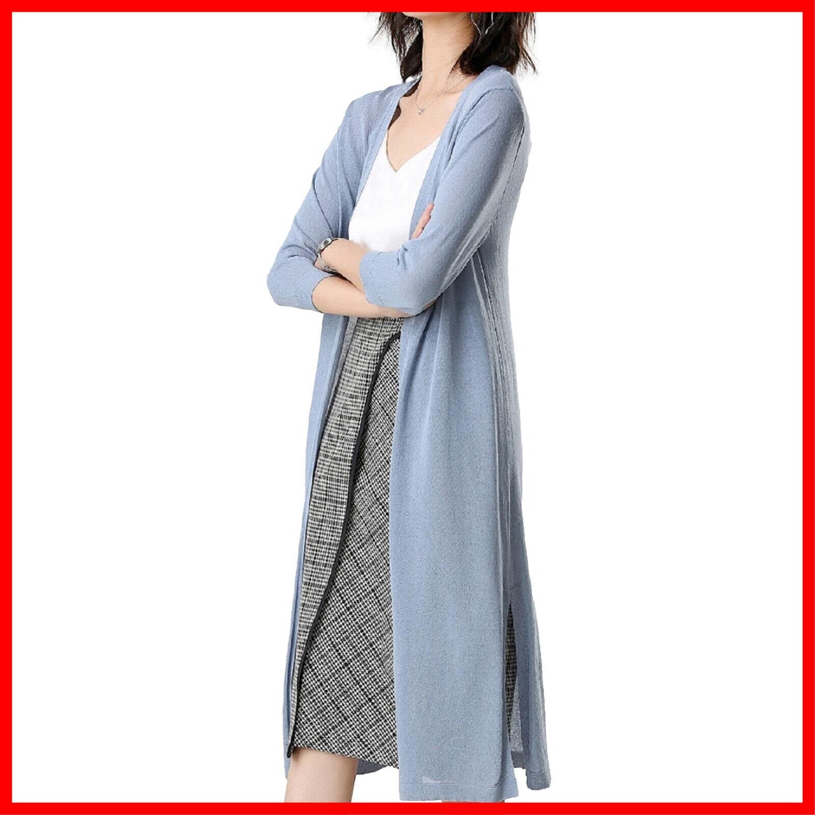 ロングカーディガン 薄手 ニット カーディガン 春 夏 秋 レディース (L, 青)