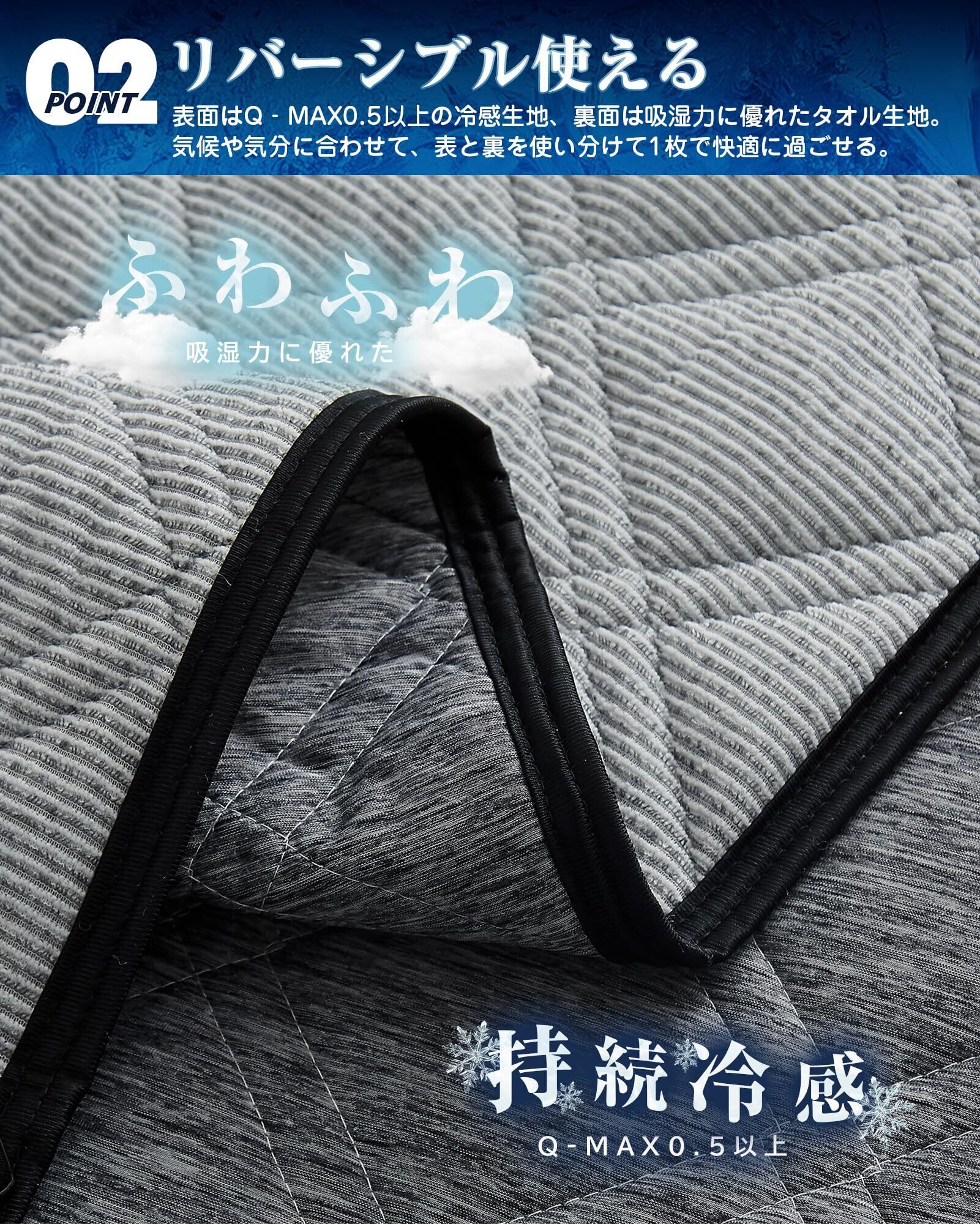 敷きパッド シングル 業界最高Q-MAX0.5以上 夏用シーツ 帝人TEIJIN中綿使用 リバーシブル 24時間持続制菌消臭 冷感持続 二重除湿速乾 ひんやり 冷感&タオル地 ベッドパッド 抗菌防臭 消臭 グレー 100×200cm Mensu